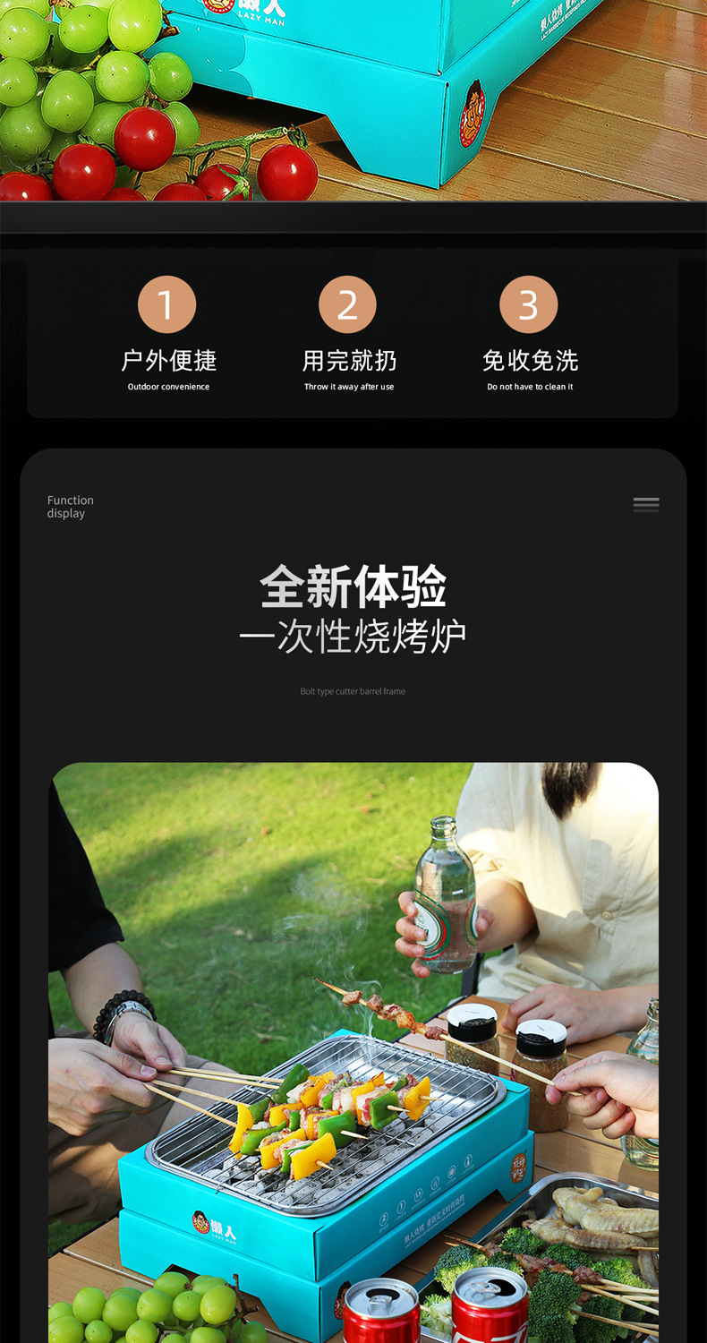 게으른 일회용 숯 바베큐 그릴 랙 야외 휴대용 케밥 세트 홈 바베큐 단열 스토브 도매스토어 가기