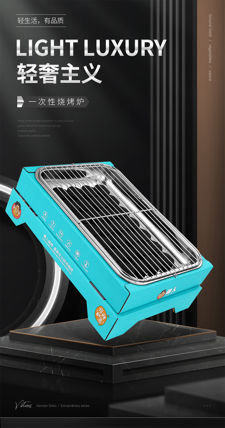 게으른 일회용 숯 바베큐 그릴 랙 야외 휴대용 케밥 세트 홈 바베큐 단열 스토브 도매