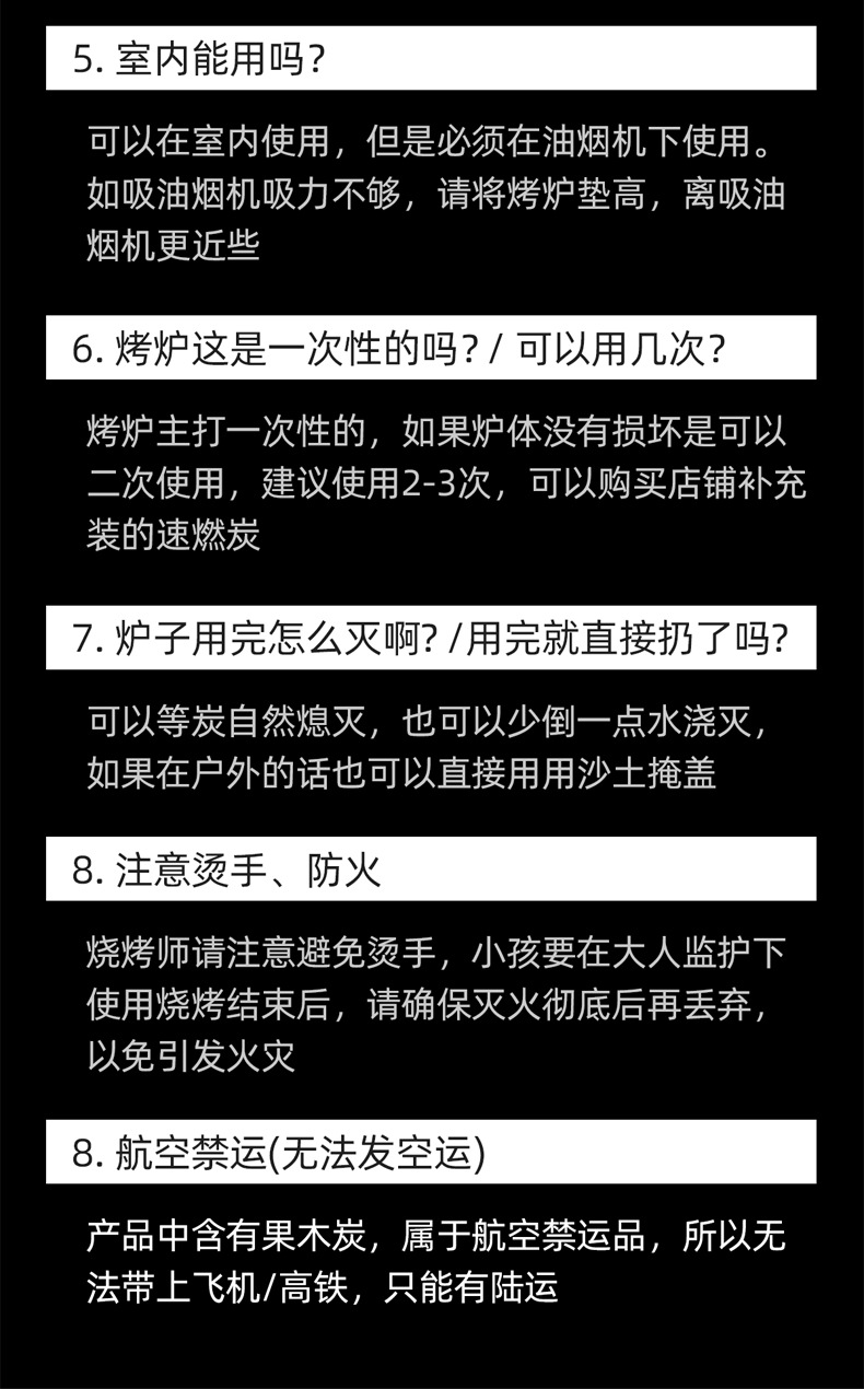 • 일회용 바베큐 그릴용 특수 숯: 30개
