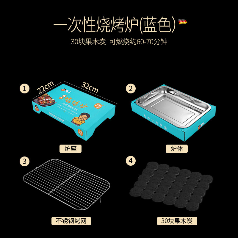 • 일회용 바베큐 그릴: 진한 파란색(숯 30개 포함)