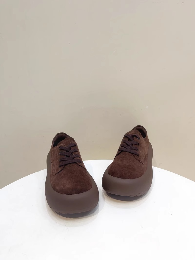 프랑스 복고풍 두꺼운 단독 신발 2024 가을 새로운 라운드 발가락 레이스 업 소프트 단독 유행 올 매치 솔리드 컬러 싱글 레이어 신발스토어 가기