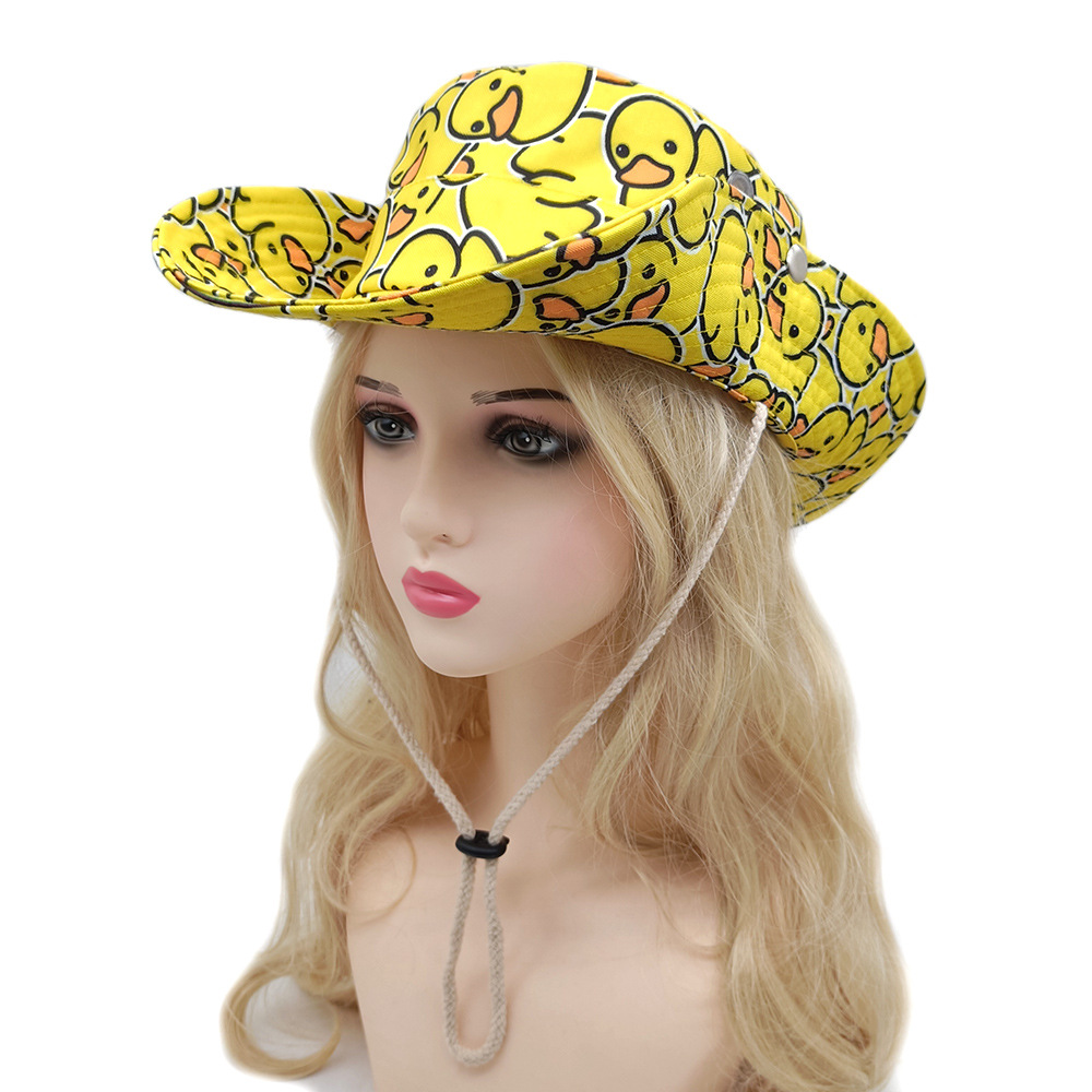 새로운 작은 노란색 오리 패턴 등산 모자 유럽과 미국 남성과 여성 차양 태양 모자 국경 패션 만화 모자