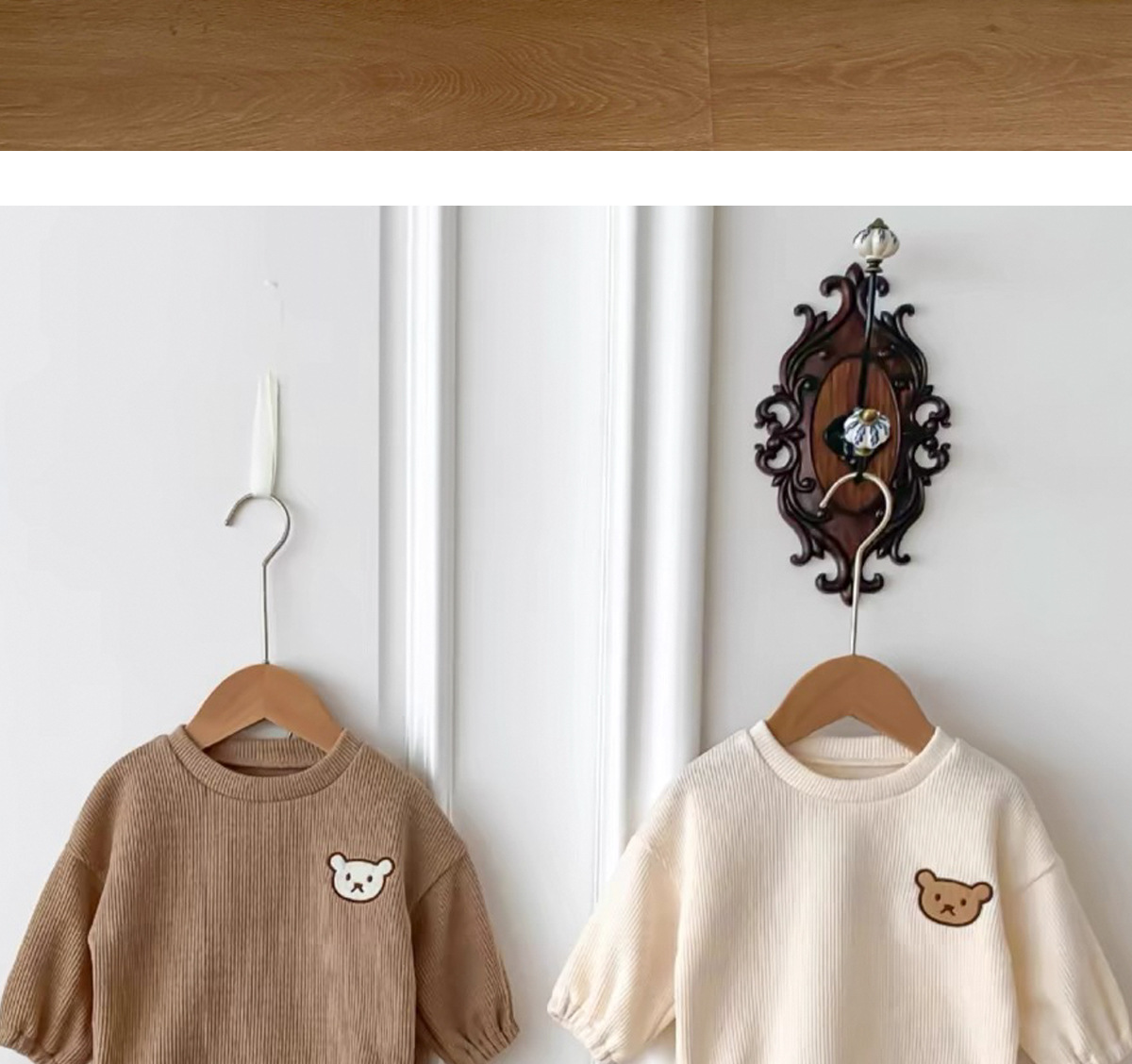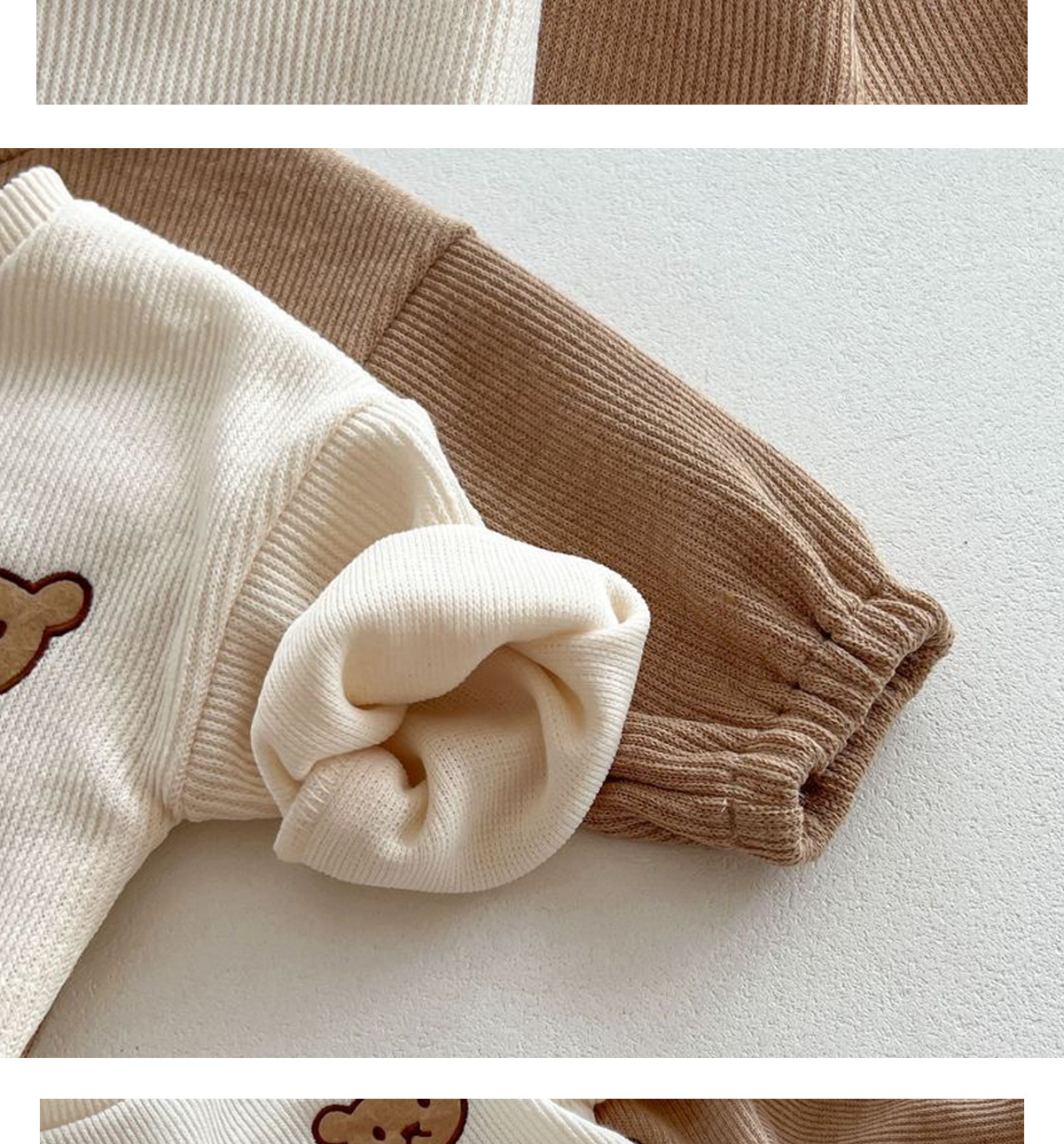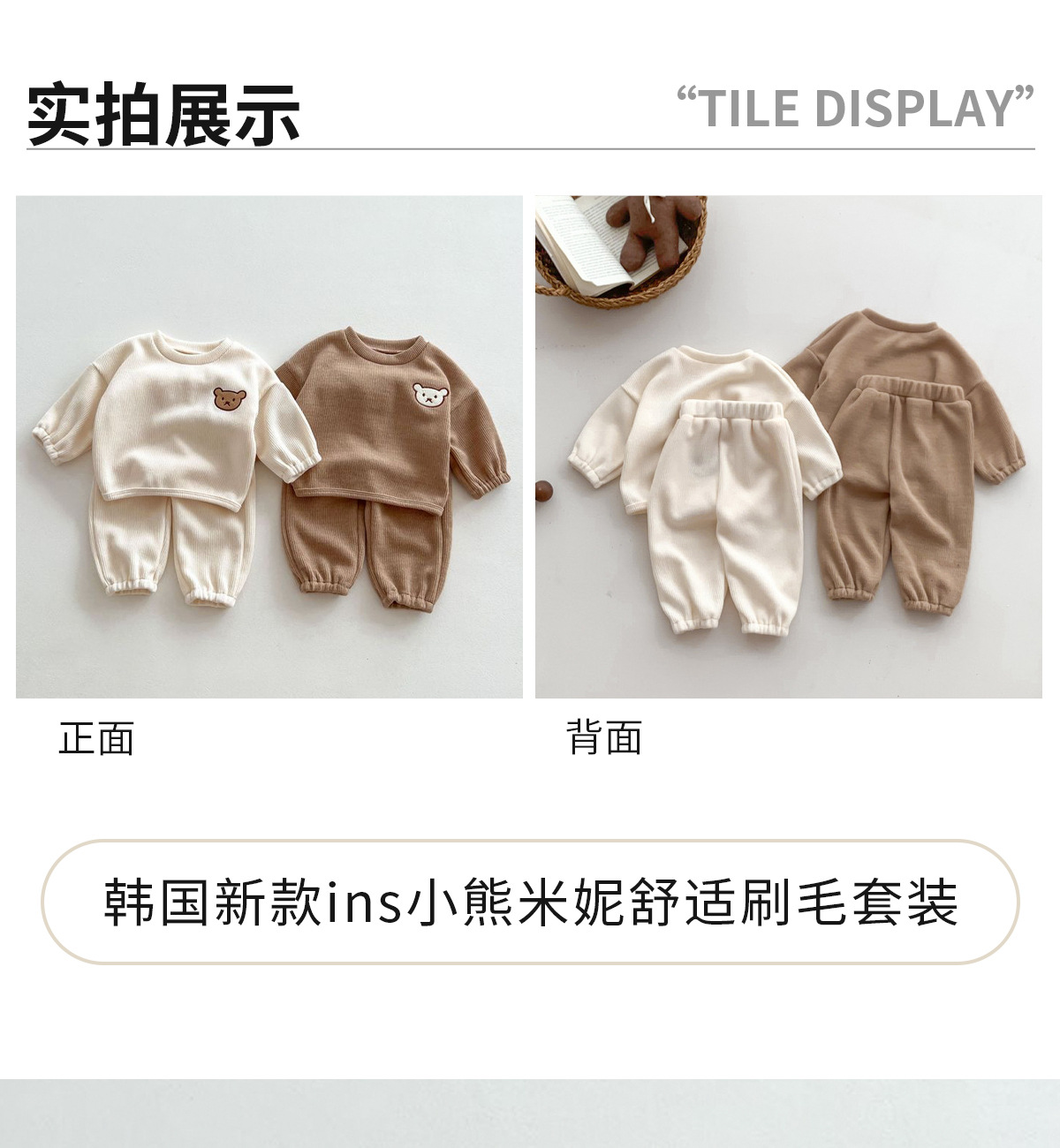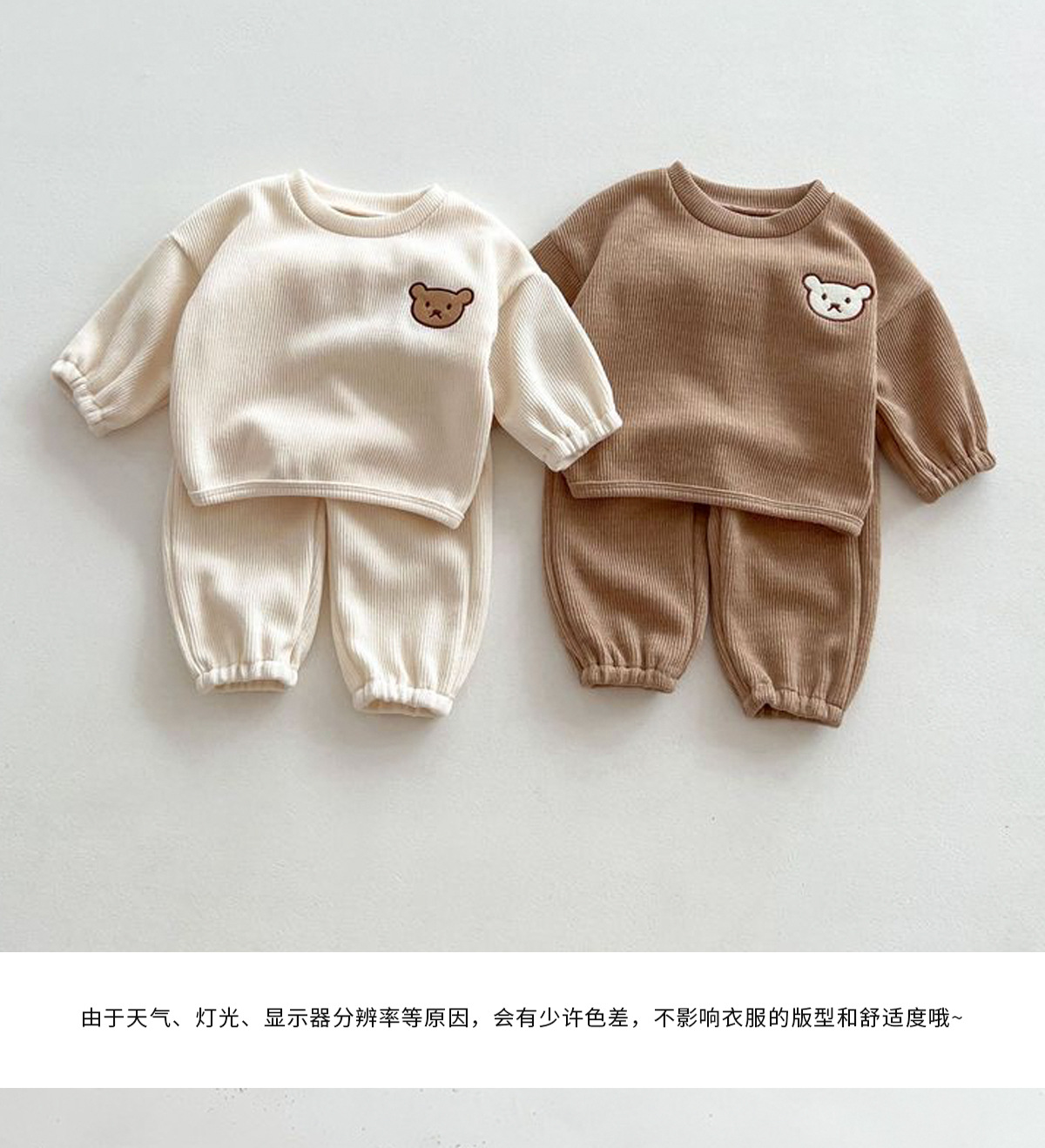 Ins 새로운 봄과 가을 한국 스타일 아기 귀여운 만화 곰 머리 긴 소매 스웨터 바지 아기 소년과 소녀를위한 캐주얼 세트스토어 가기