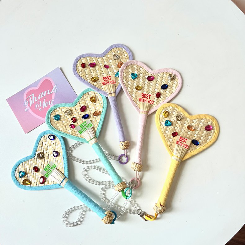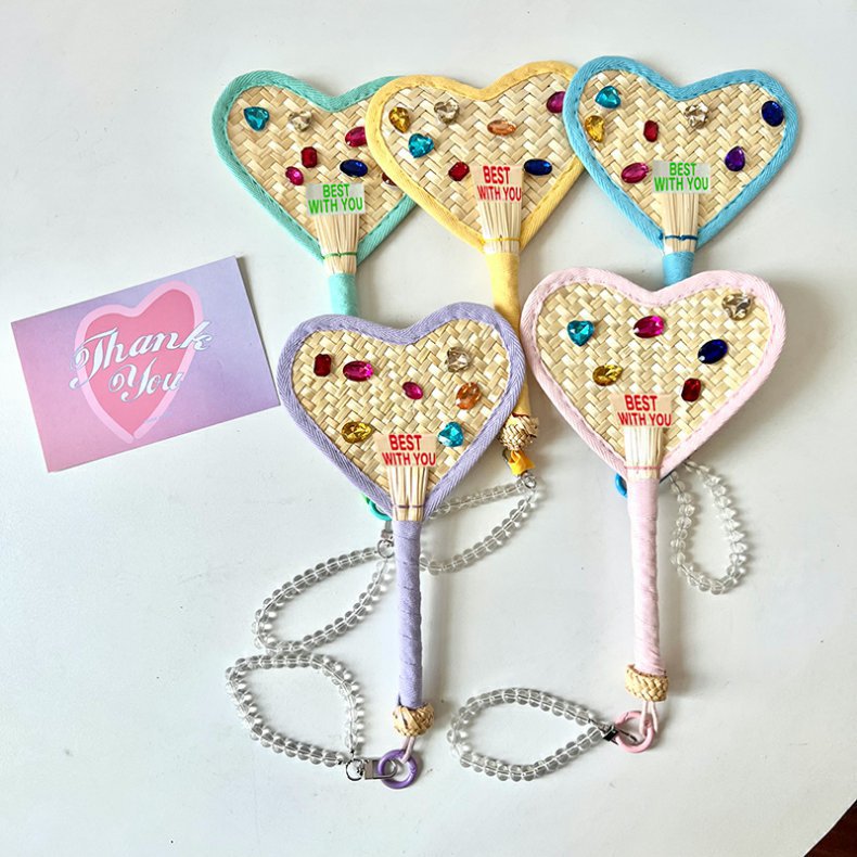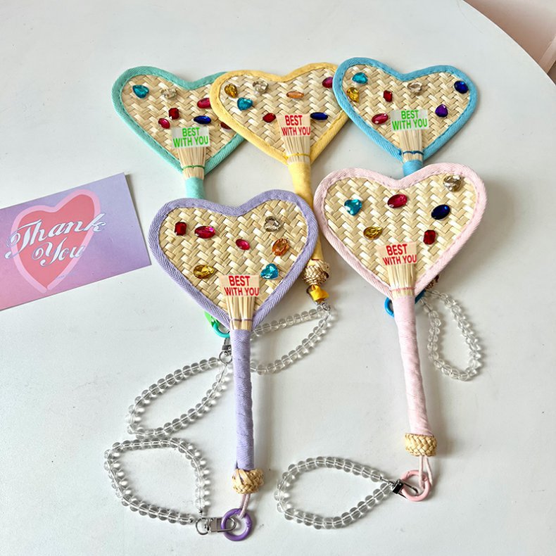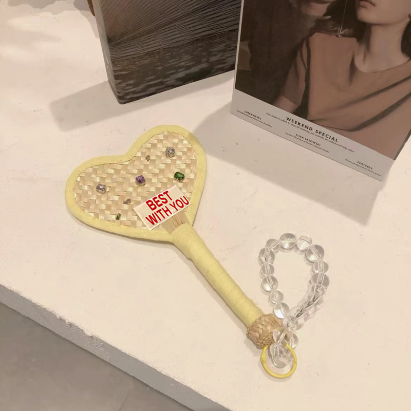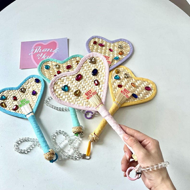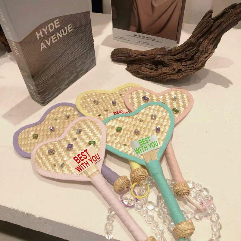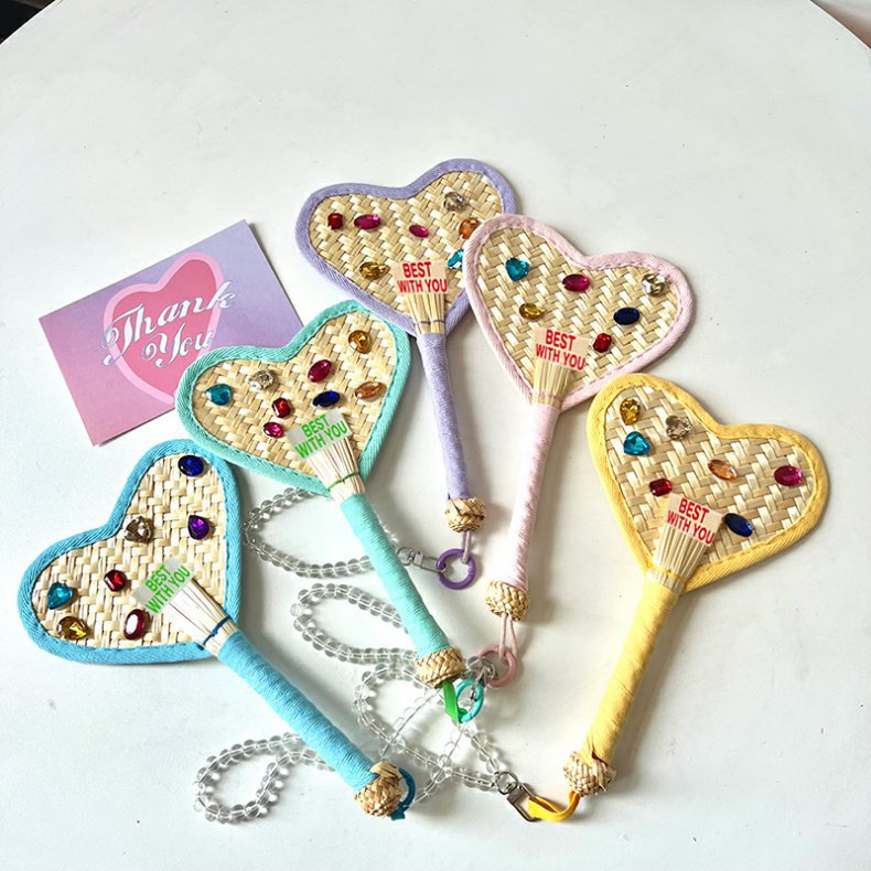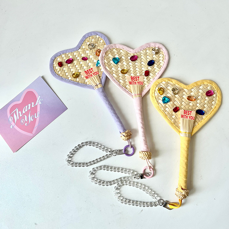 그물 축하 팬 사랑 Pu 팬 공주 완성 된 구슬 펜던트 대나무 짠 헤지 여름 그물 축하 복숭아 심장 짠 팬 팬