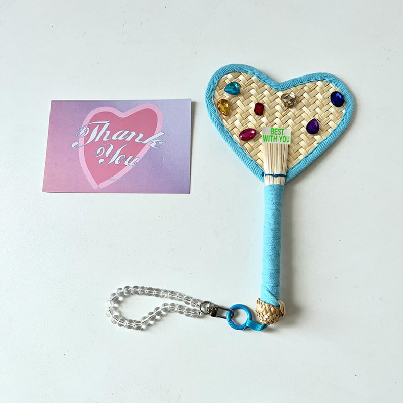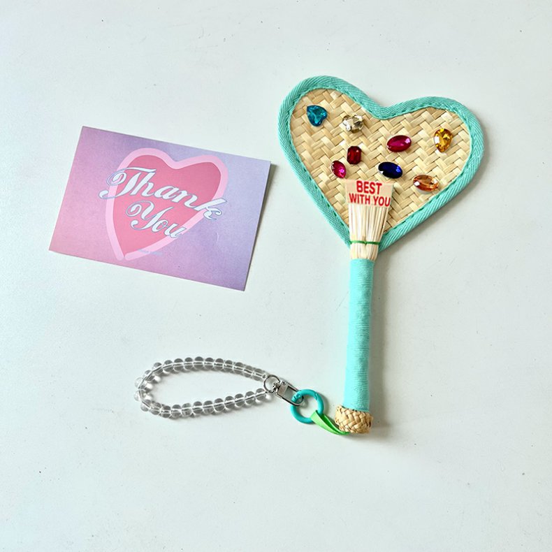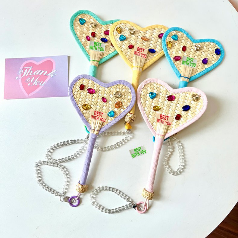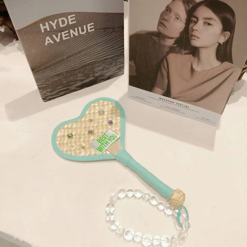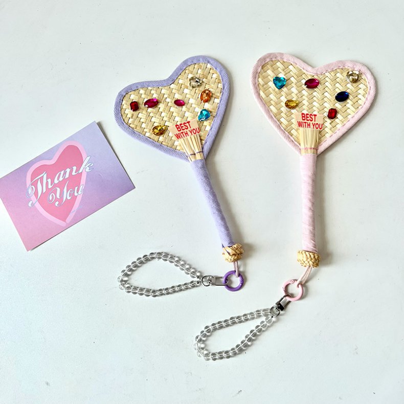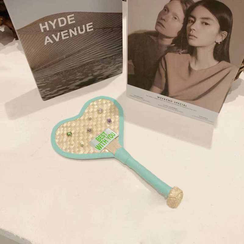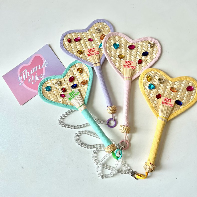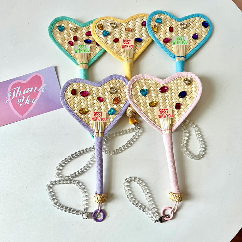 그물 축하 팬 사랑 Pu 팬 공주 완성 된 구슬 펜던트 대나무 짠 헤지 여름 그물 축하 복숭아 심장 짠 팬 팬
