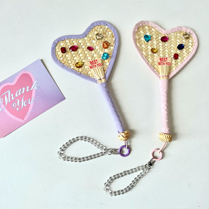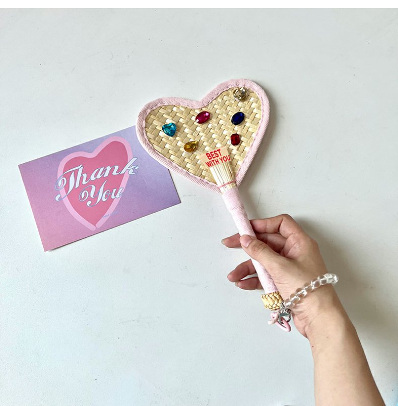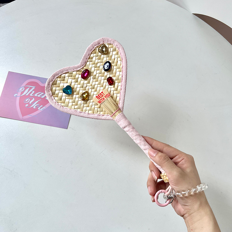 그물 축하 팬 사랑 Pu 팬 공주 완성 된 구슬 펜던트 대나무 짠 헤지 여름 그물 축하 복숭아 심장 짠 팬 팬스토어 가기