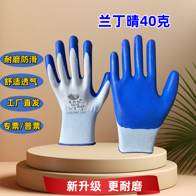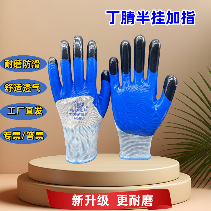 Postage Ding Qing 장갑 N518 내마모성 미끄럼 방지 니트릴 고무 교수형 현장 작업 접착제 도매 노동 장갑스토어 가기
