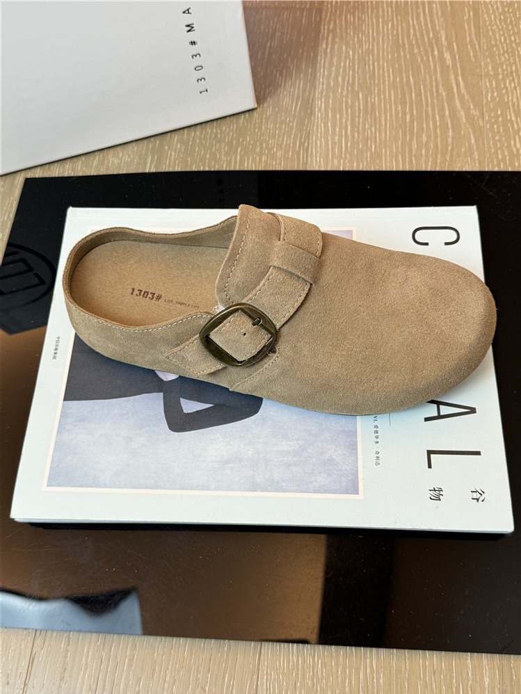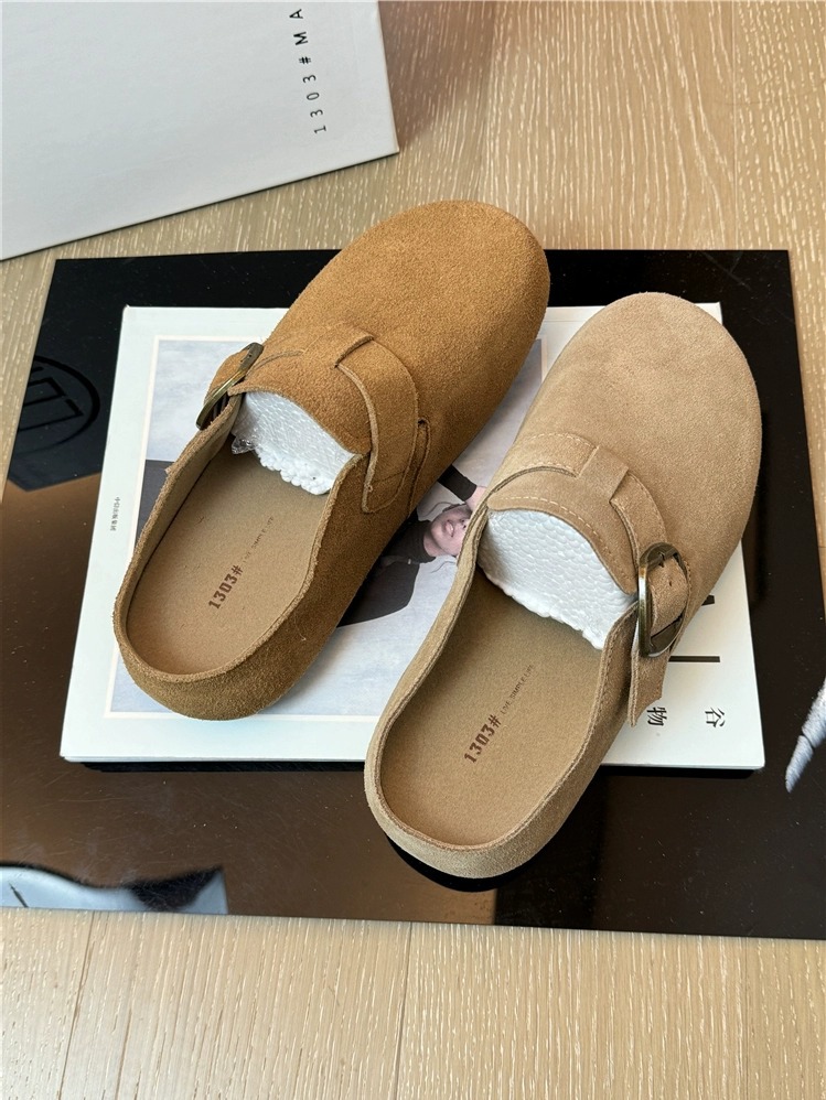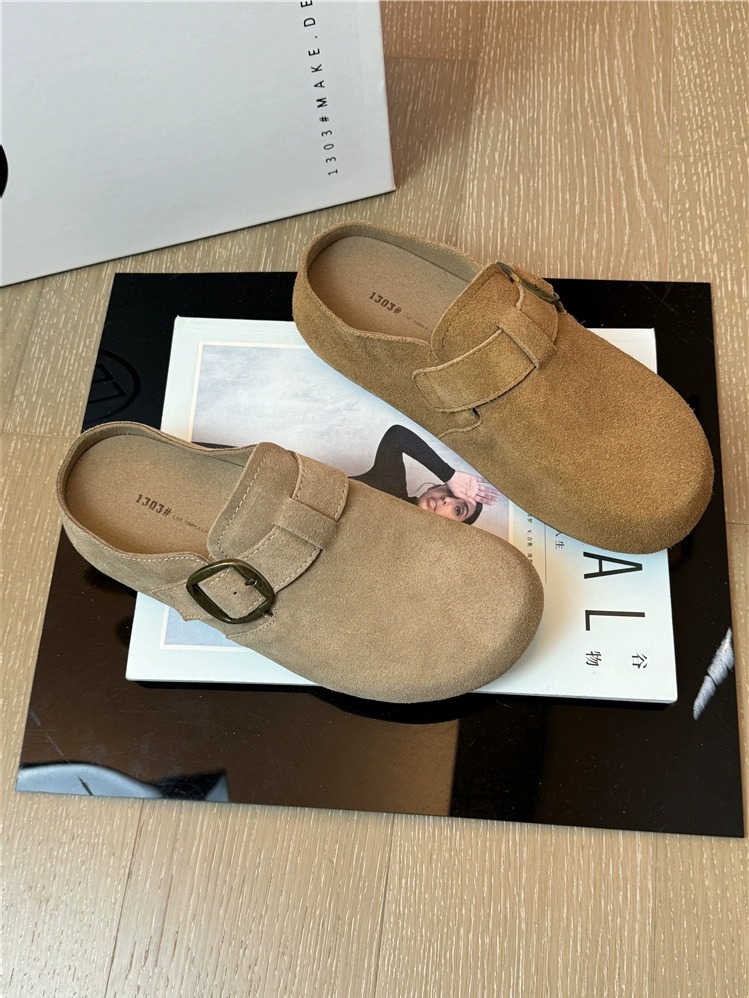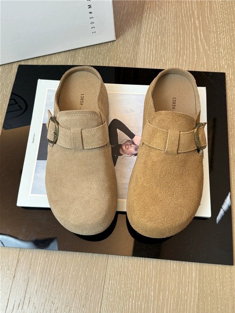 [즐하이킹] 바오터우 하프 슬리퍼 여성 2024 년 가을 새 의상 복고풍 두꺼운 밑창 봉켄 신발 뮬러 여성용 신발스토어 가기