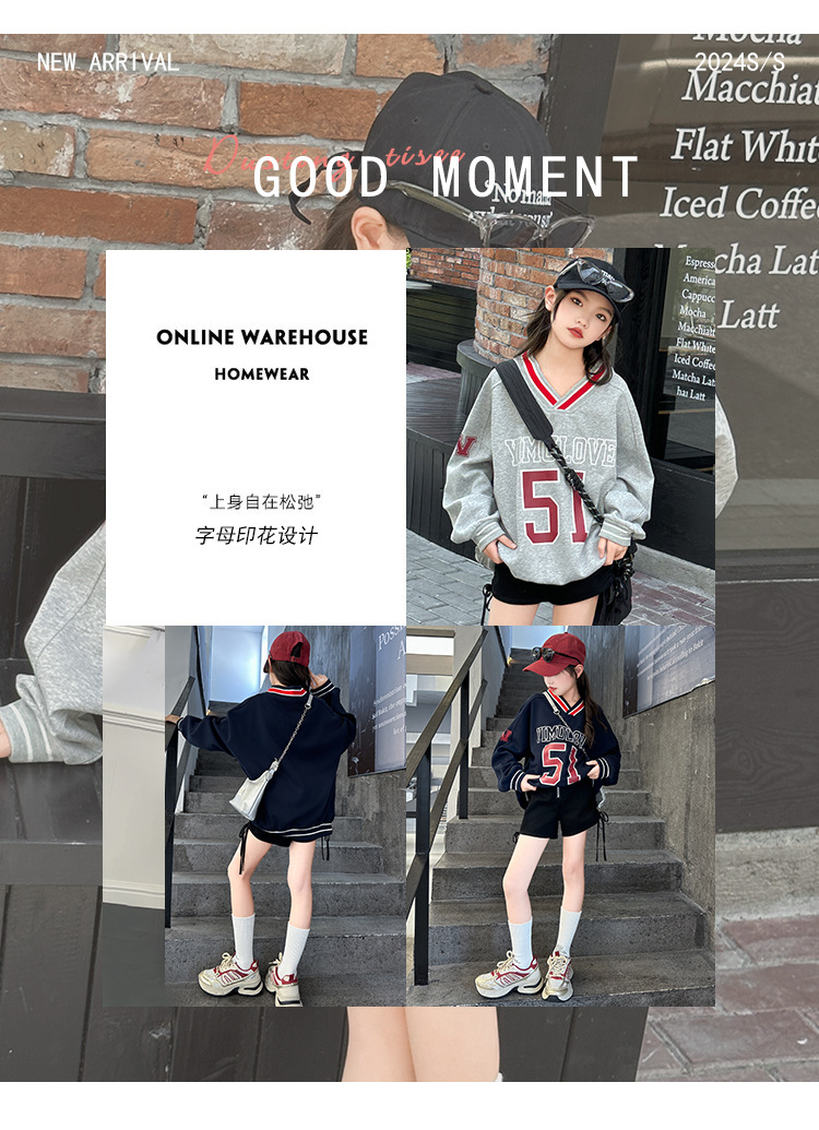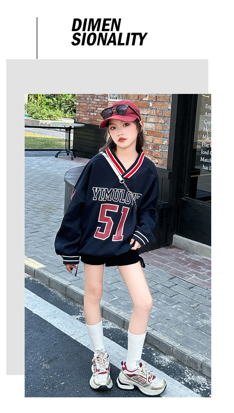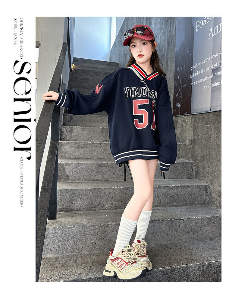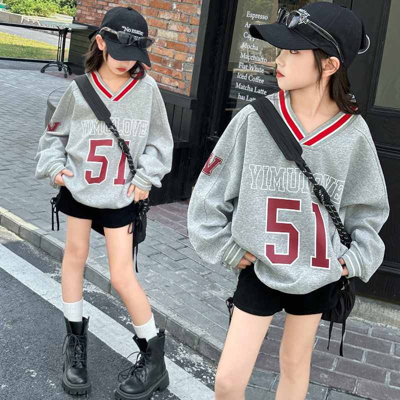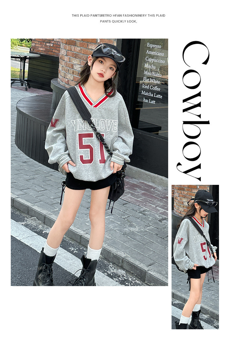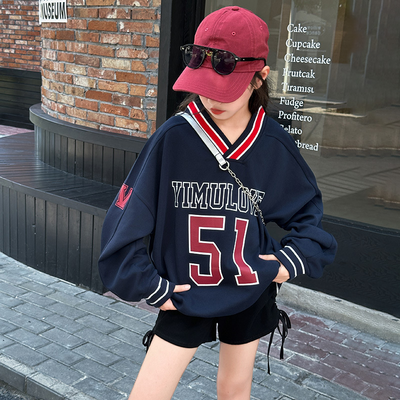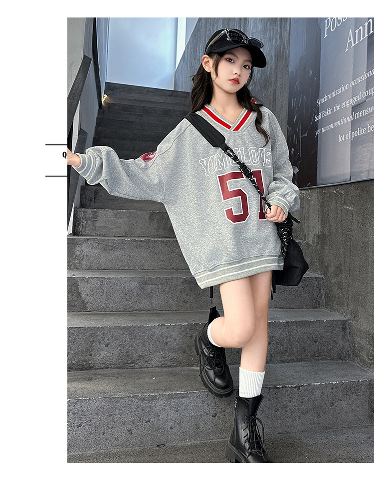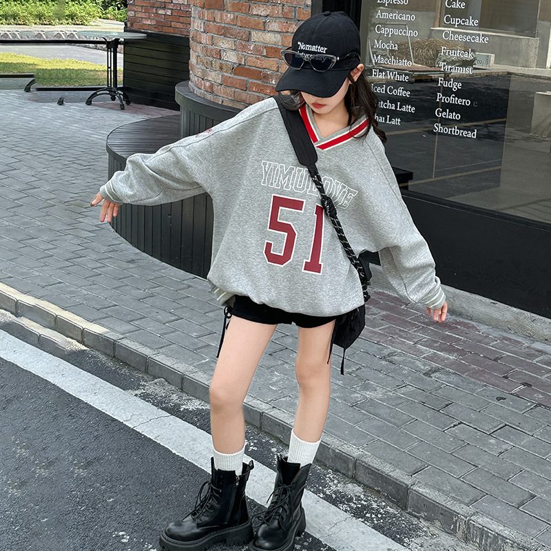 소녀 봄 가을 2024 새로운 스타일 빅 키즈 어린이 세련된 쿨웨어 가을 원피스 대학 스타일의 느슨한 긴팔 탑스토어 가기