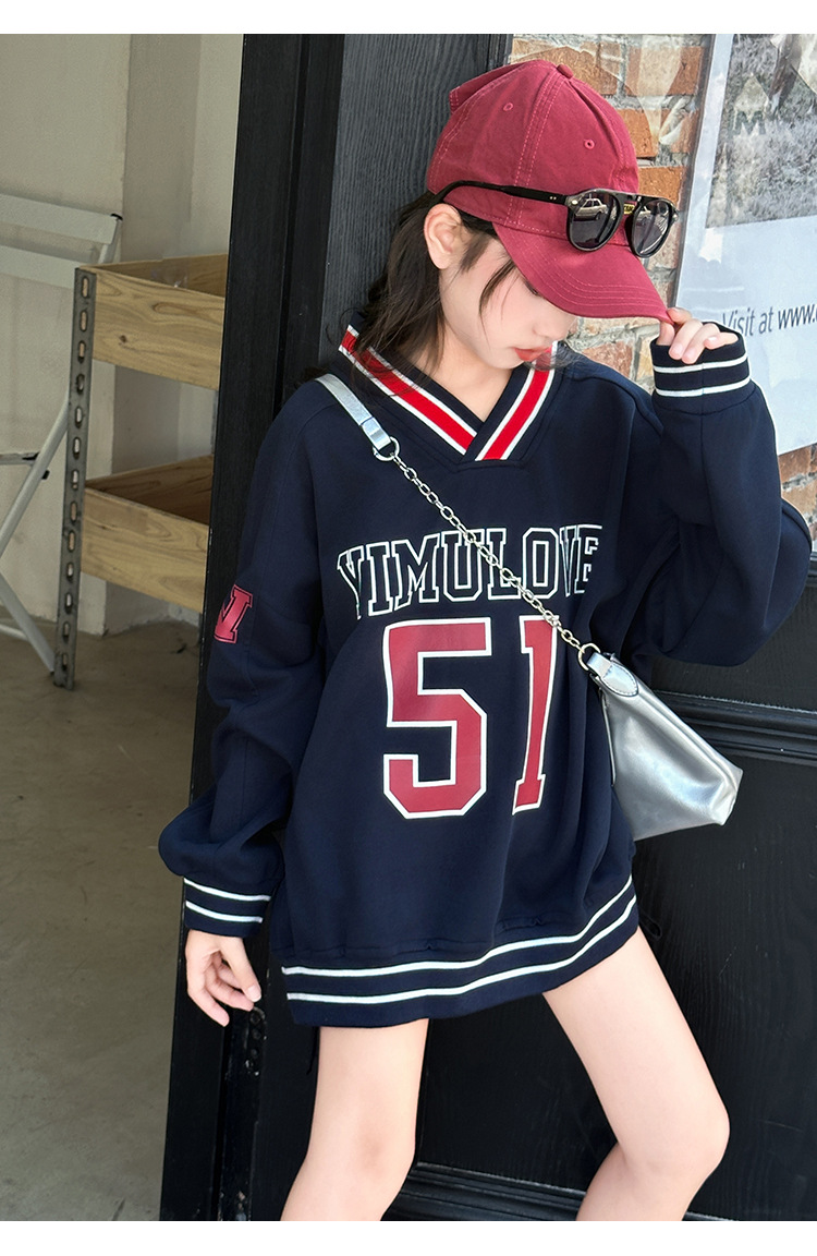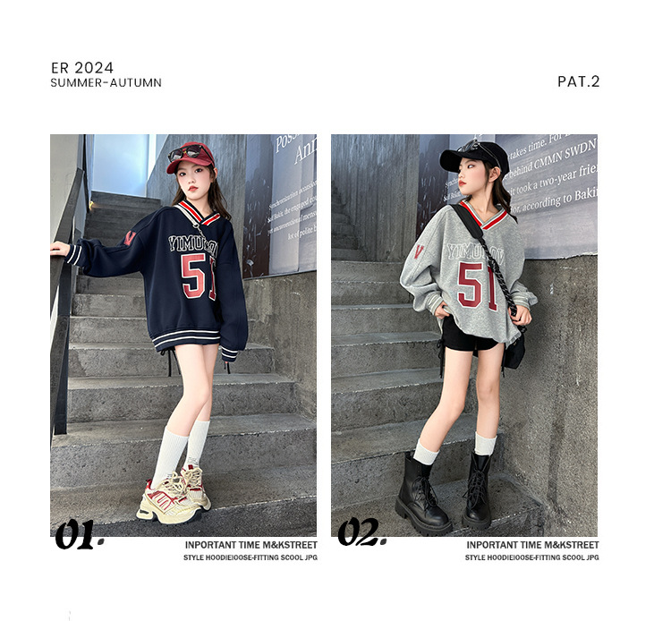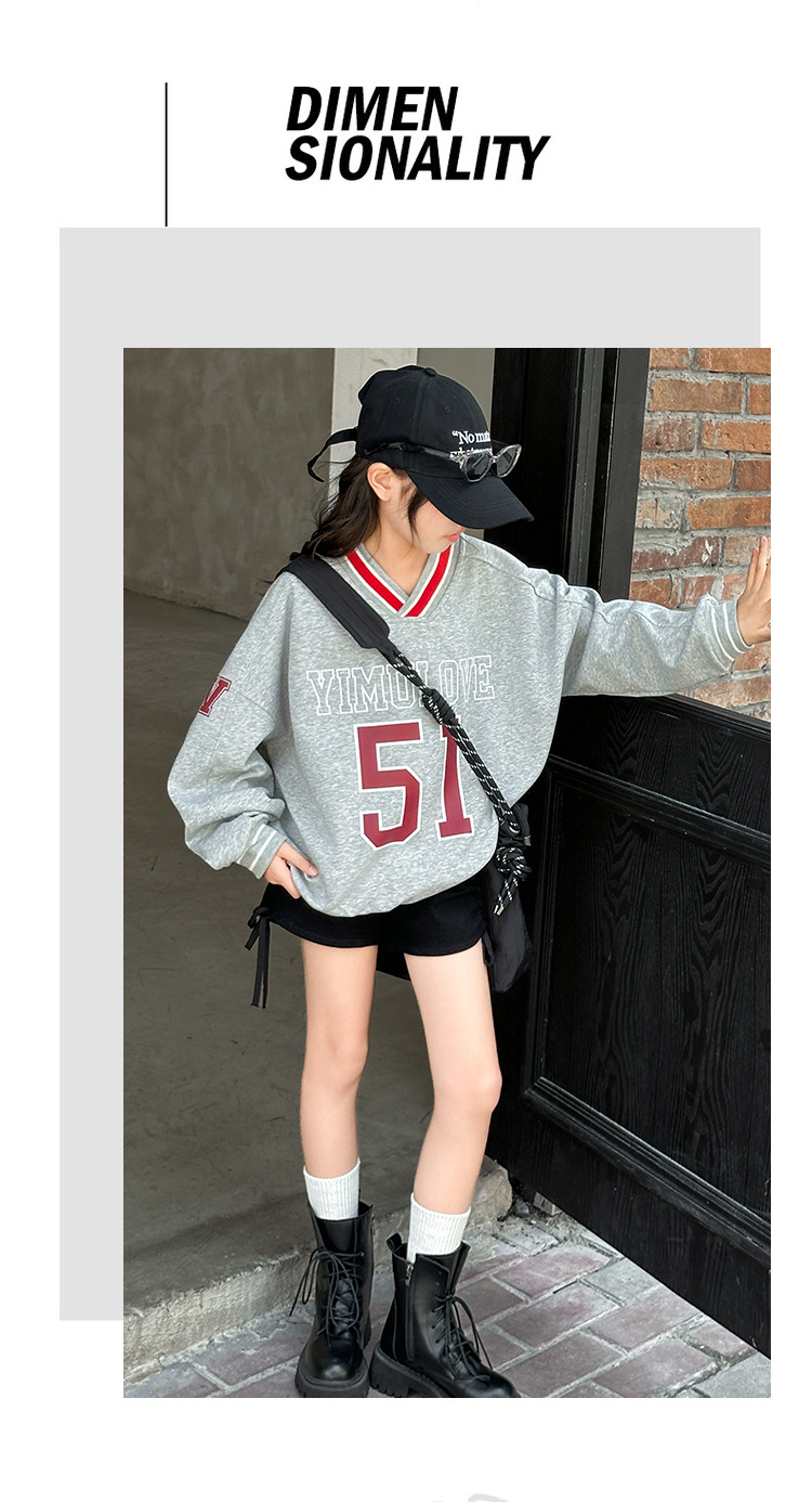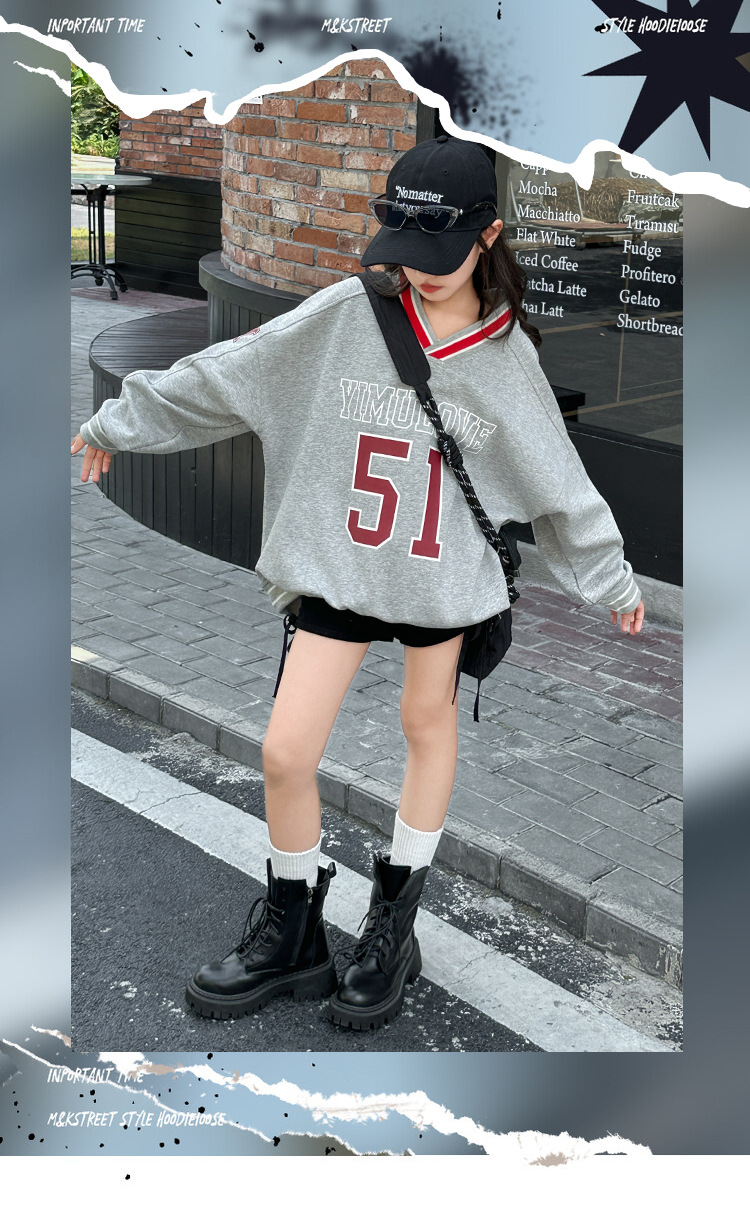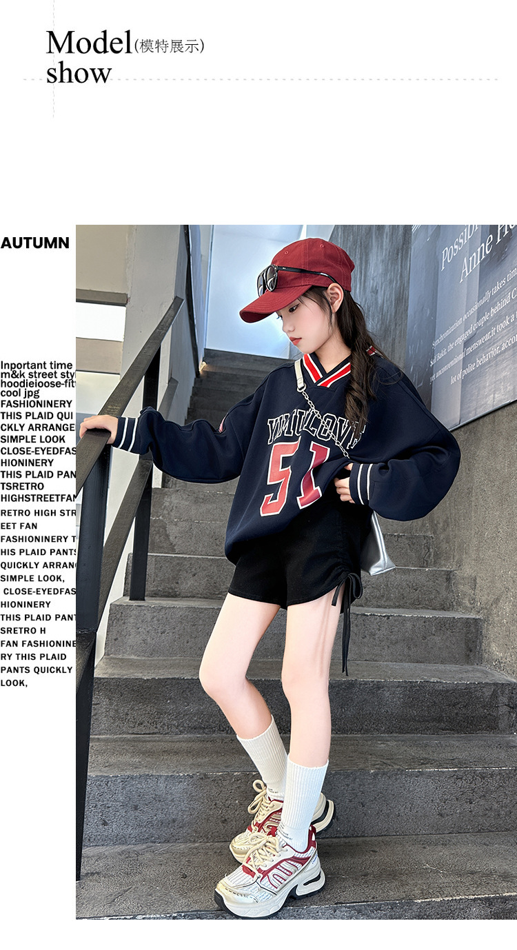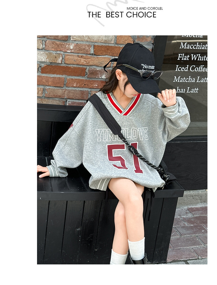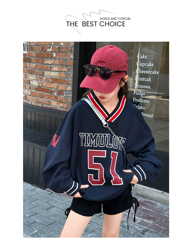 소녀 봄 가을 2024 새로운 스타일 빅 키즈 어린이 세련된 쿨웨어 가을 원피스 대학 스타일의 느슨한 긴팔 탑스토어 가기
