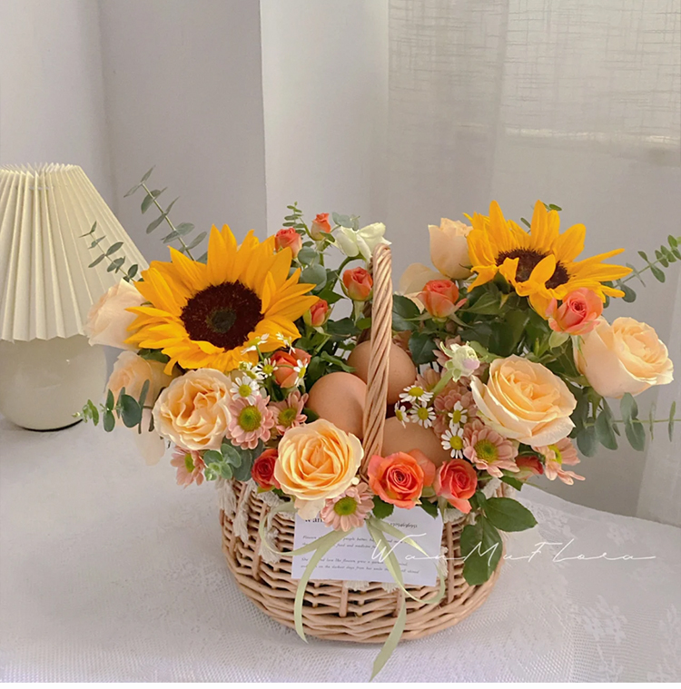 계란 꽃 바구니 나무 칩 짠 감금 꽃 꽃꽂이 잔디 위커 꽃다발 여자 친구 선물 꽃 바구니 손 선물스토어 가기