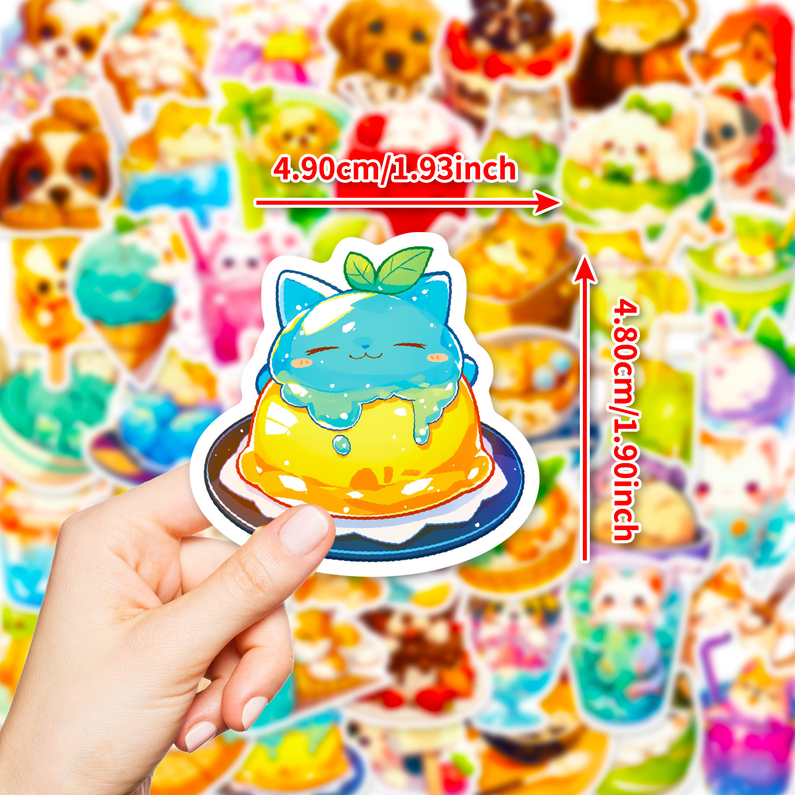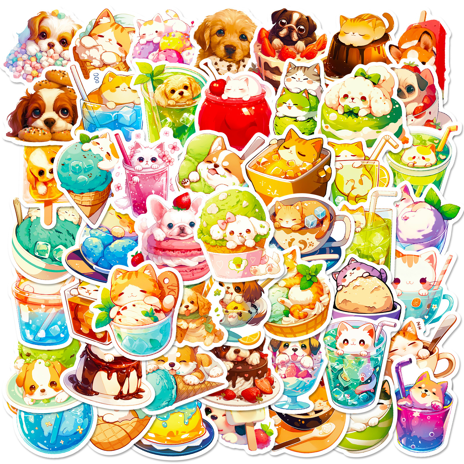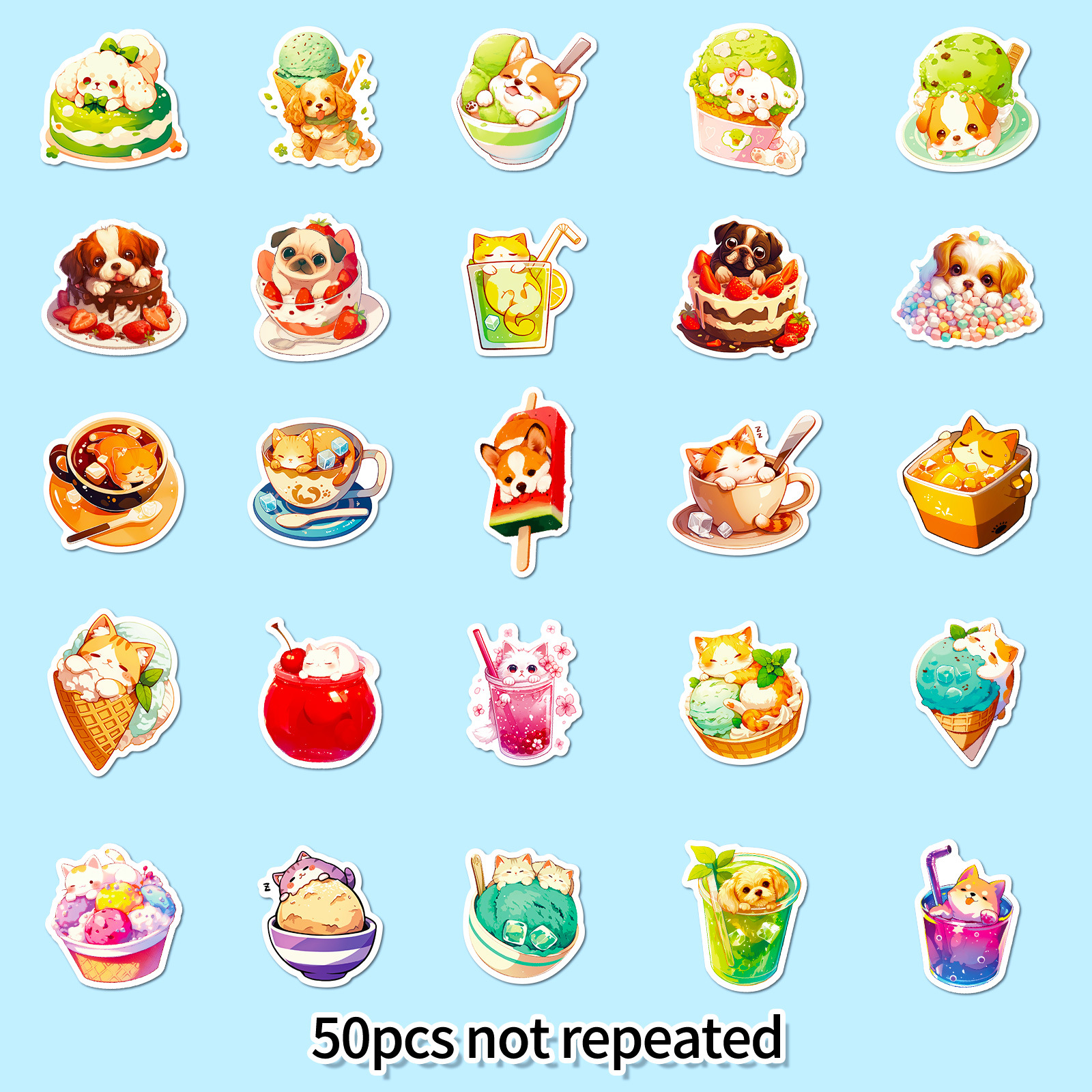 50 창조적 인 귀여운 음식 고양이 개 낙서 스티커 푸딩 고양이 아이스크림 강아지는 재미 스티커를 반복하지 않습니다스토어 가기