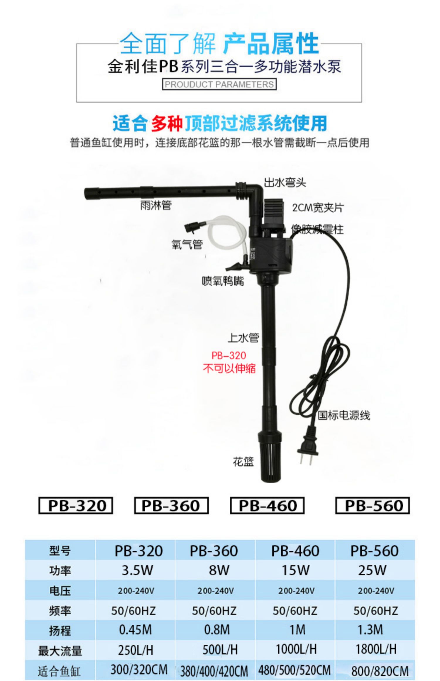 Jinlijia 어항 초 조용한 필터 3 대 1 물고기 문화 산소 펌프 작은 상부 필터 순환 펌프 잠수정 펌프