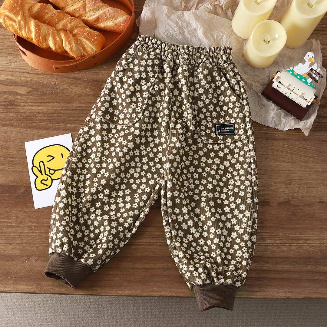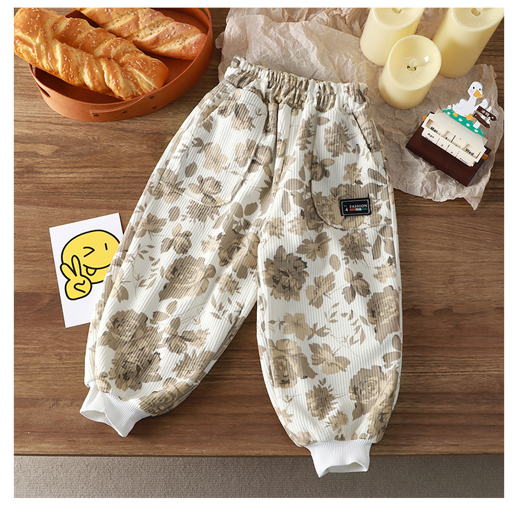 여자 꽃 느슨한 바지 아기 캐주얼 바지 소년 트렌디 한 TikTok 폭발성 꽃 바지 힙합 바지 와이드 레그 바지