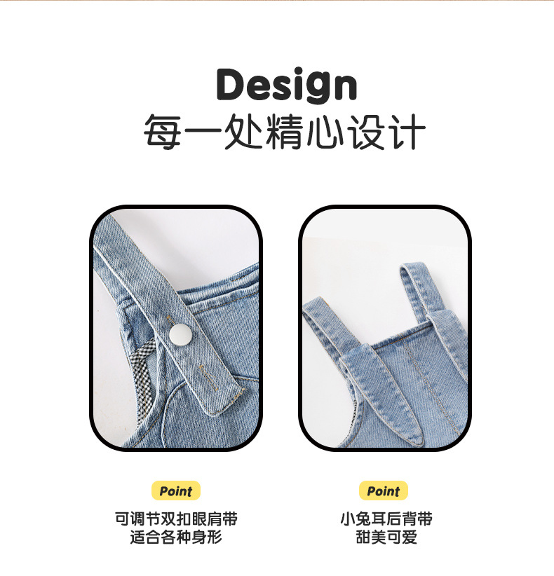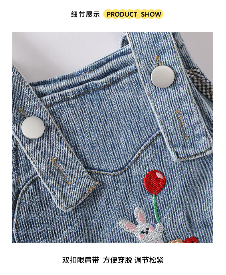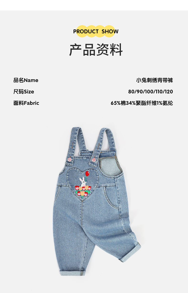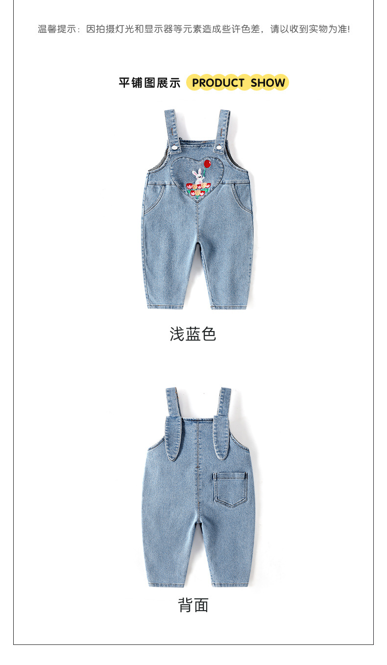 가을 소녀의 토끼 자수 스트랩 바지 달콤한 만화 데님 바지 따뜻한 바지 여성용 바지스토어 가기
