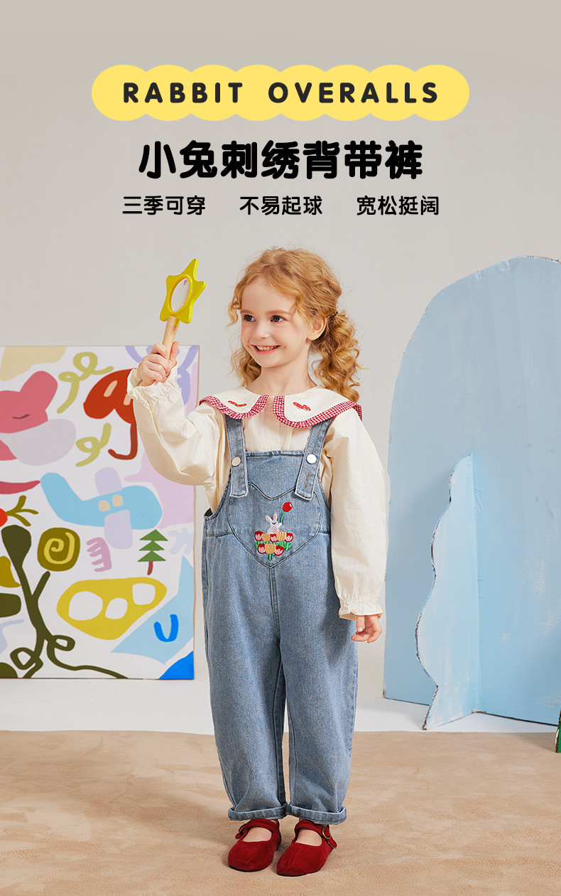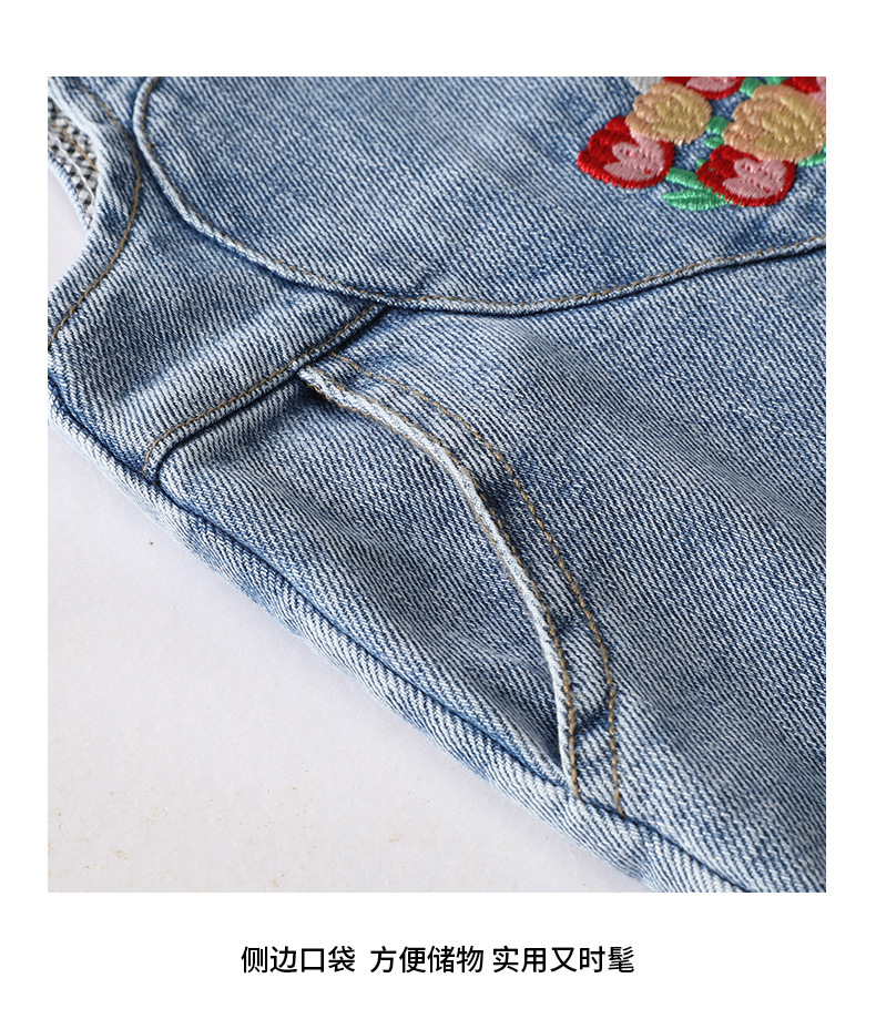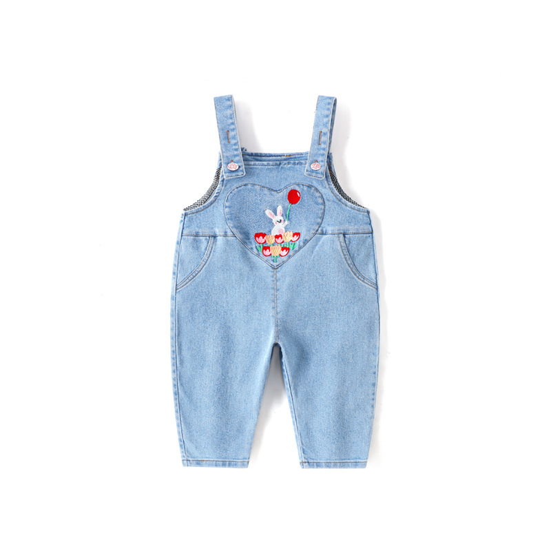 가을 소녀의 토끼 자수 스트랩 바지 달콤한 만화 데님 바지 따뜻한 바지 여성용 바지
