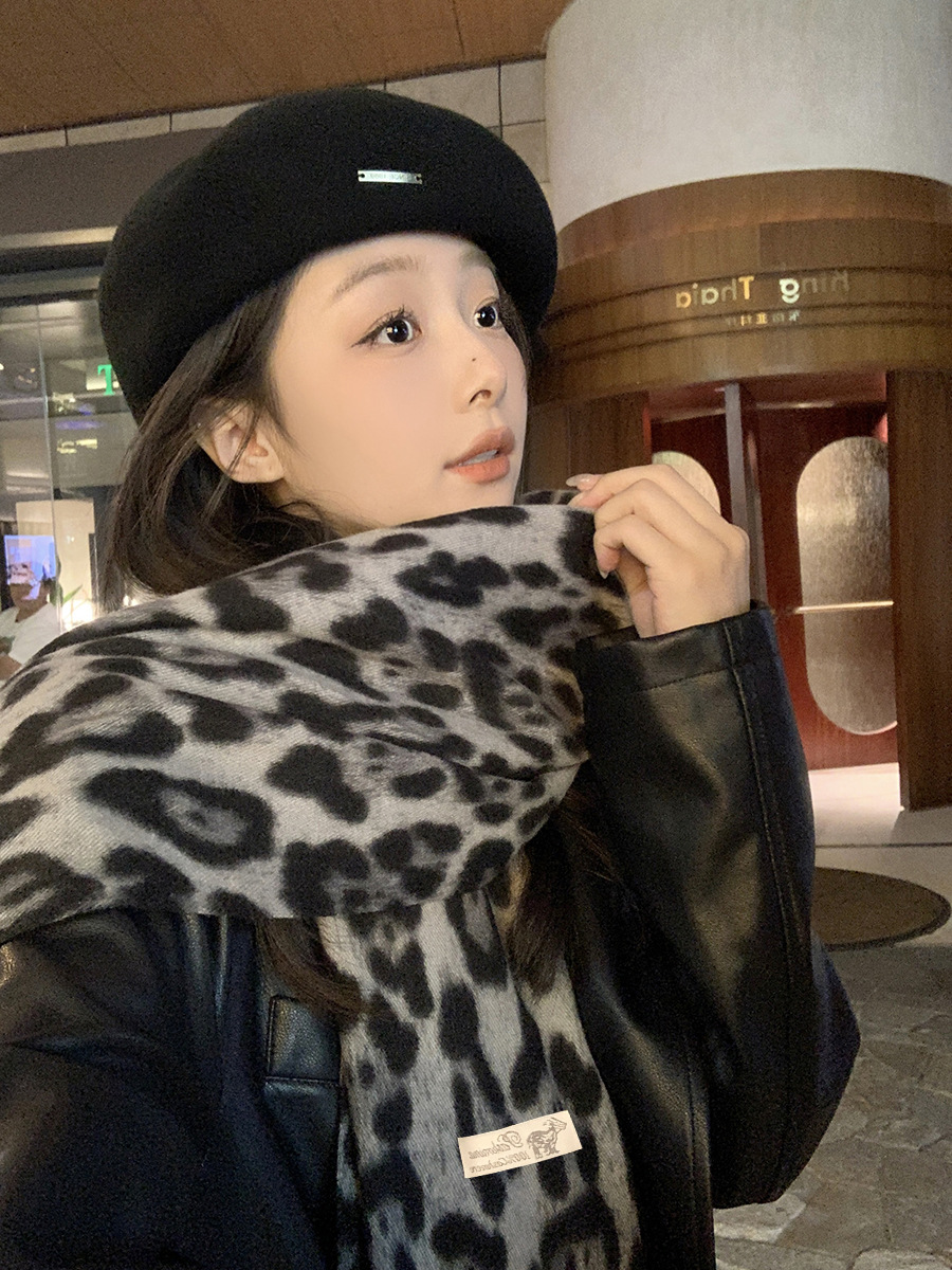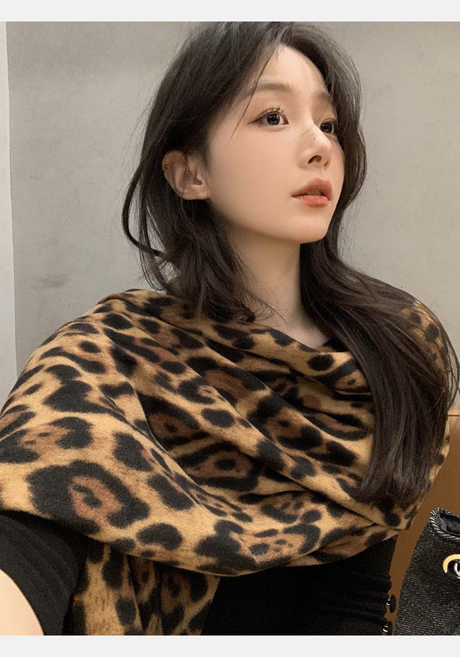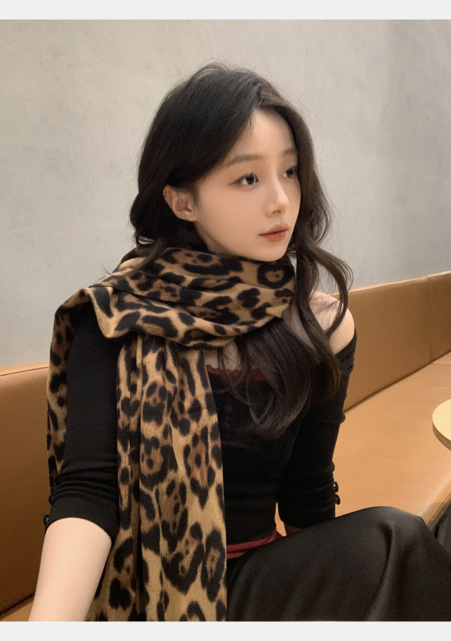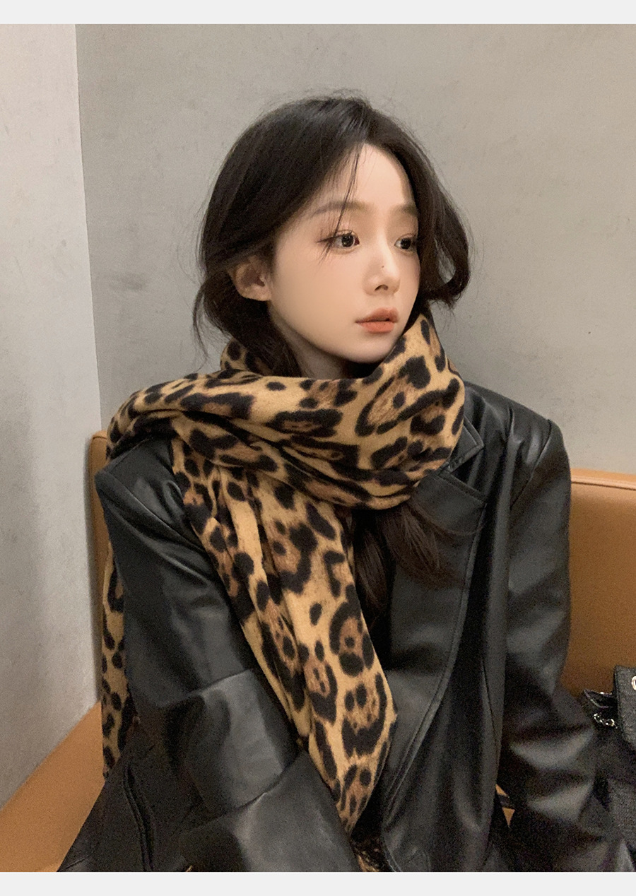 여성을위한 한국 스타일 레오파드 프린트 태슬 스카프 2024 뉴 밀레니엄 핫 소녀 스타일 가을, 겨울 두꺼운 목도리 가을, 겨울 따뜻한 스카프