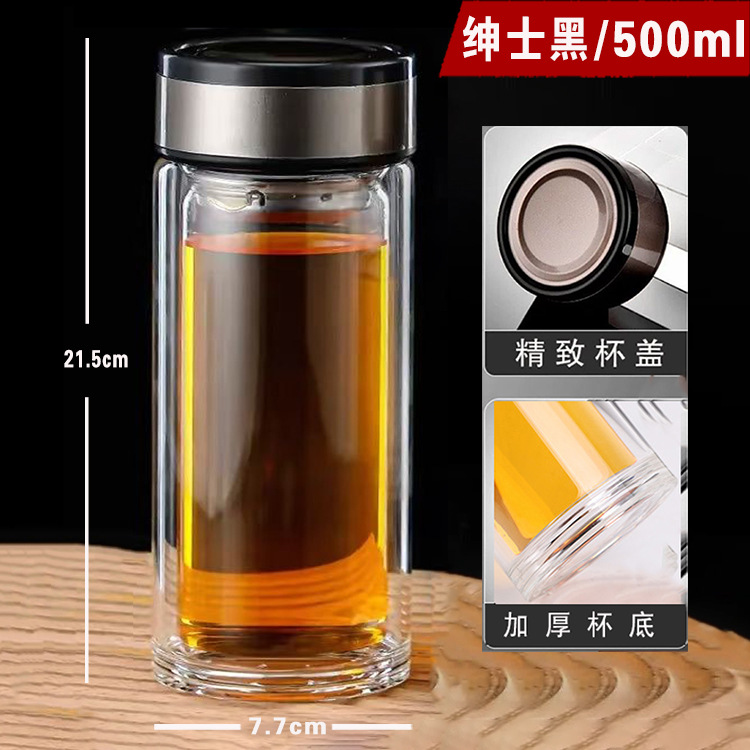 대용량 높은 붕규산 이중층 유리 인쇄 이중층 단열 차 물 분리 차 투명 유리 컵