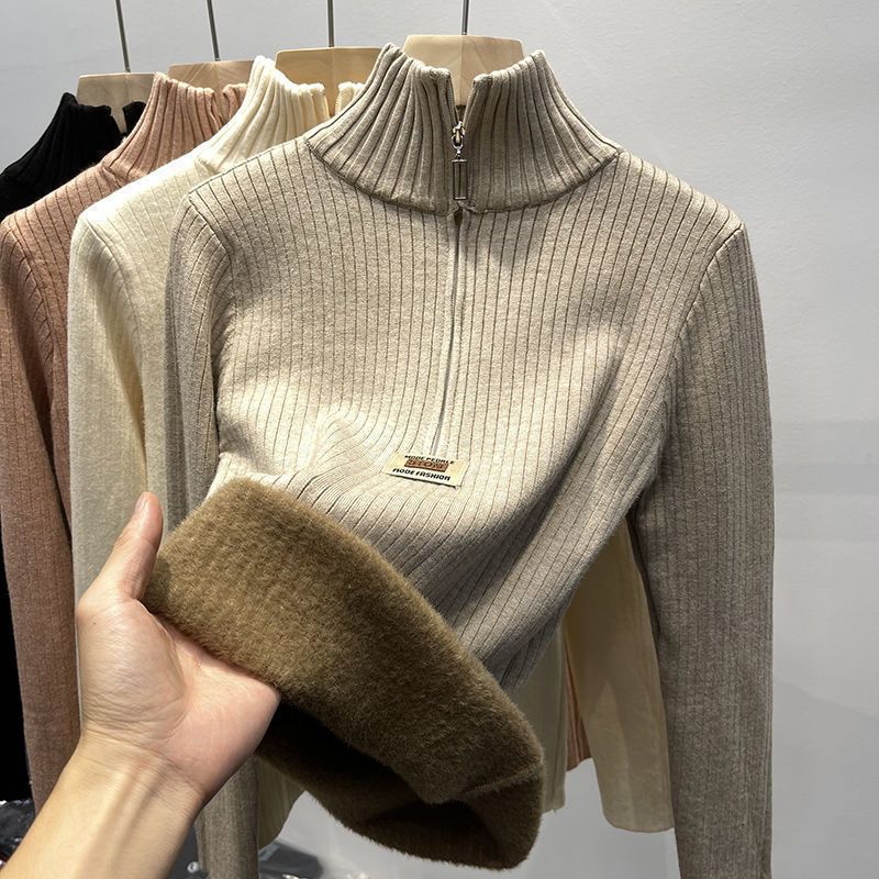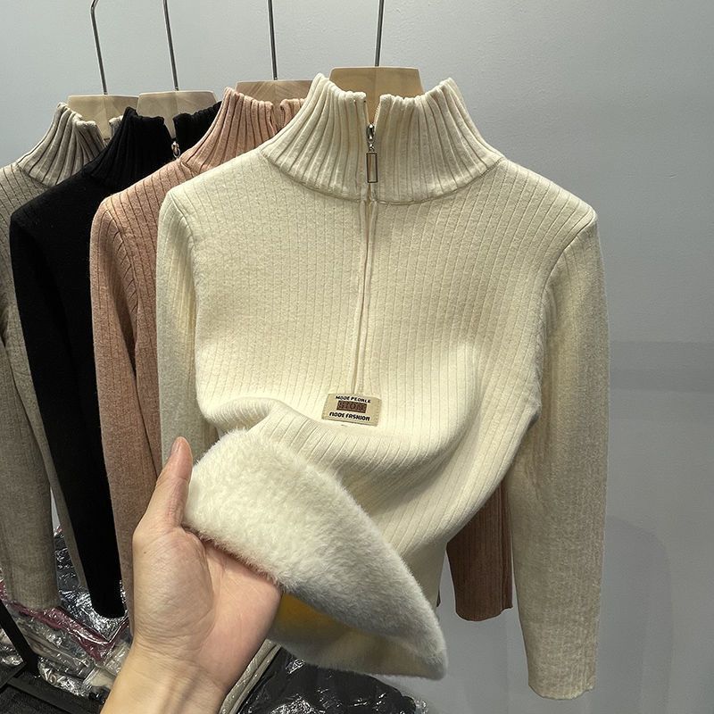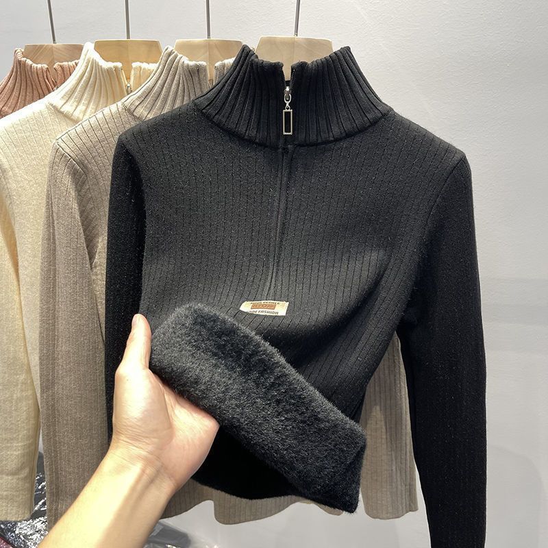 가을과 겨울 2024 새로운 원피스 벨벳 기모 두껍게 풀 올매치 베이스 셔츠 하프 하이 칼라 스웨터 여성스토어 가기