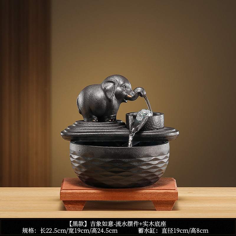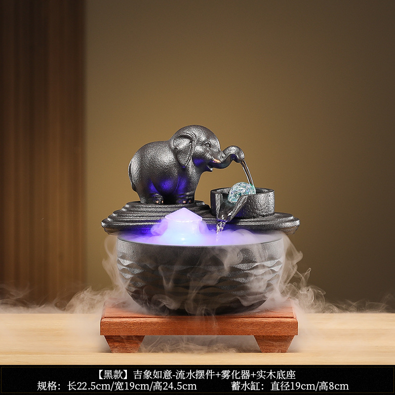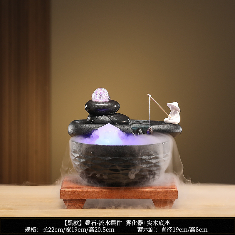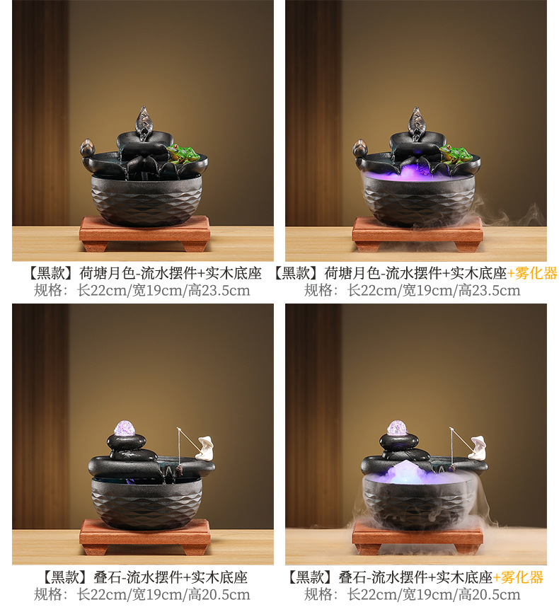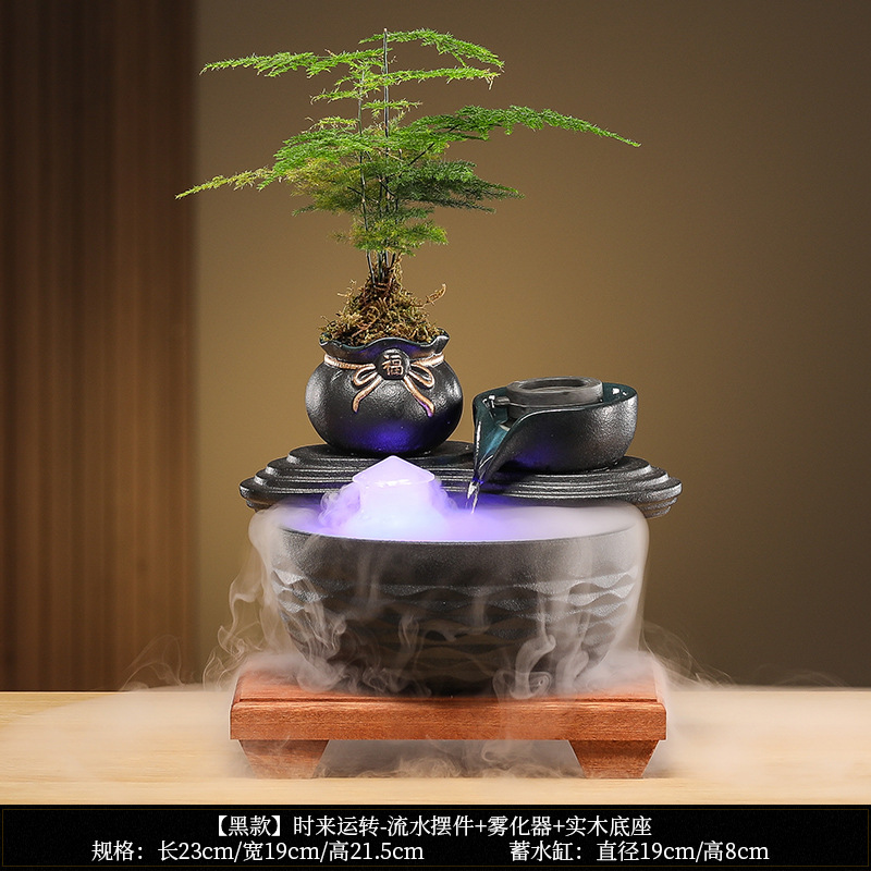 • [블랙 모델] Luxiang Ruyi - 흐르는 물 장식품 + 분무기 + 단단한 나무 베이스