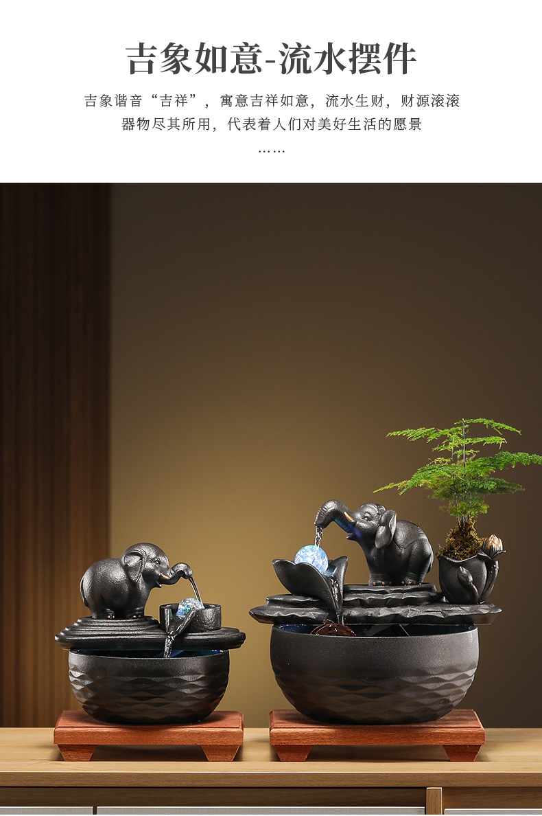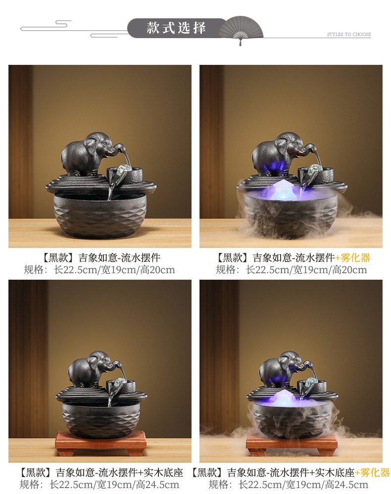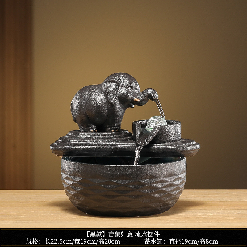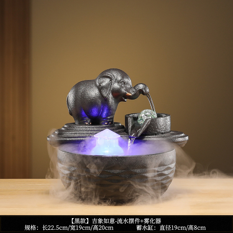 • [블랙 모델] Luxiang Ruyi - 흐르는 물 장식품 + 분무기 + 단단한 나무 베이스