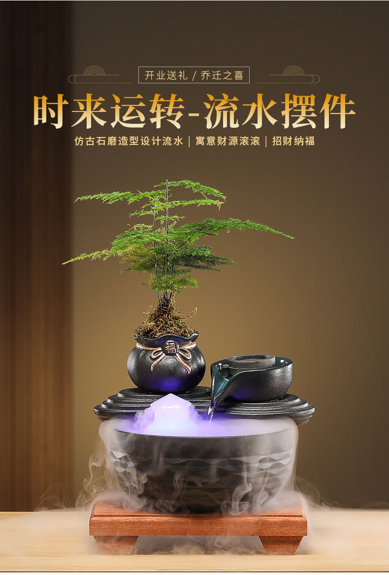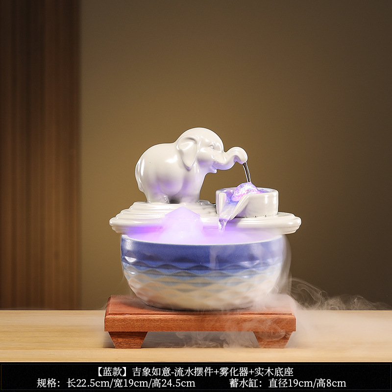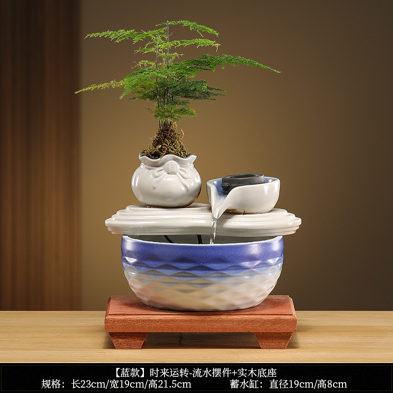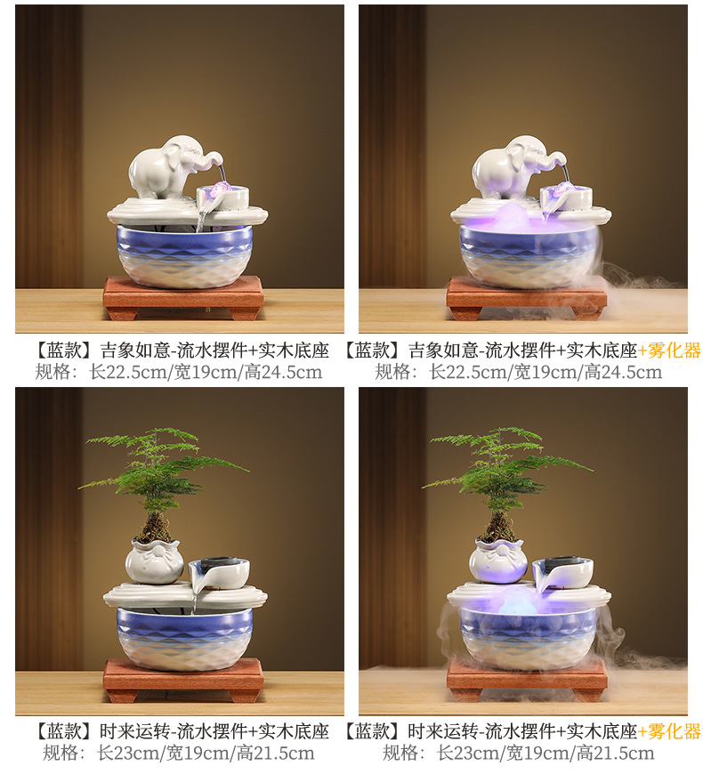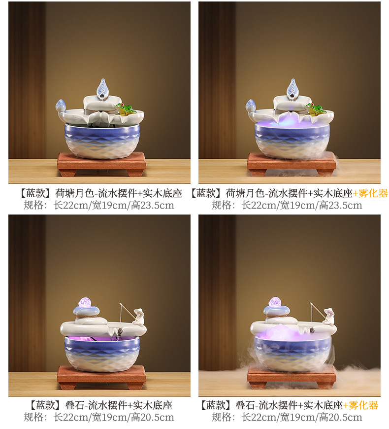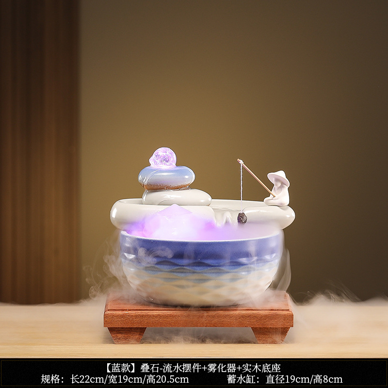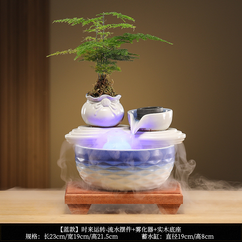 • [블루 모델] Luxiang Ruyi - 흐르는 물 장식품 + 분무기 + 단단한 나무 베이스