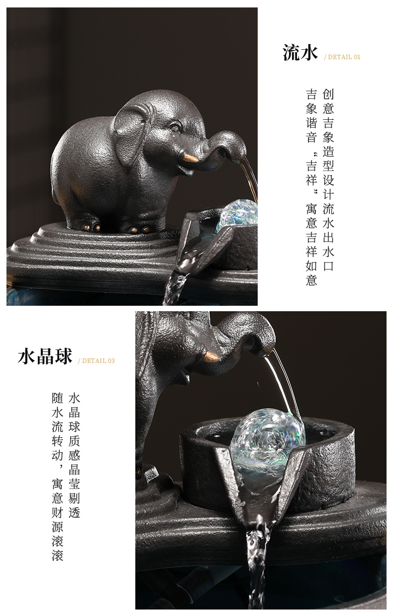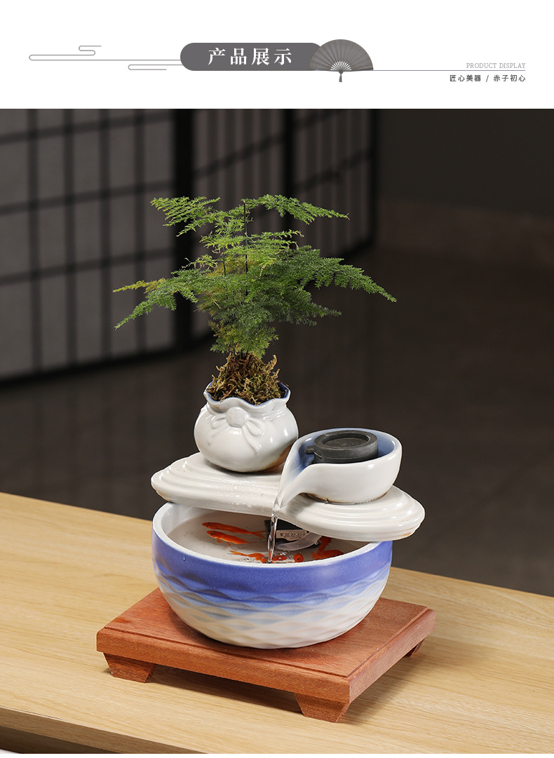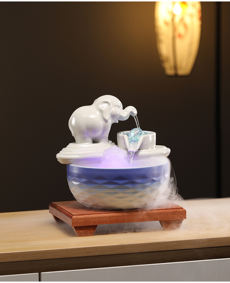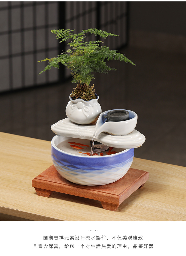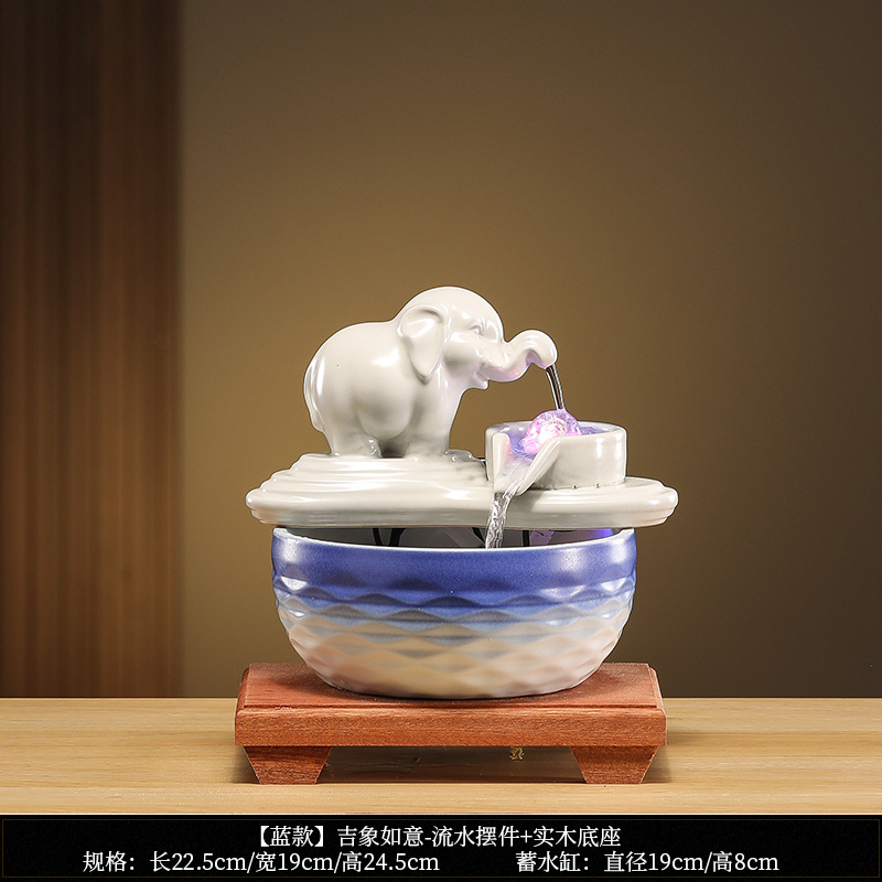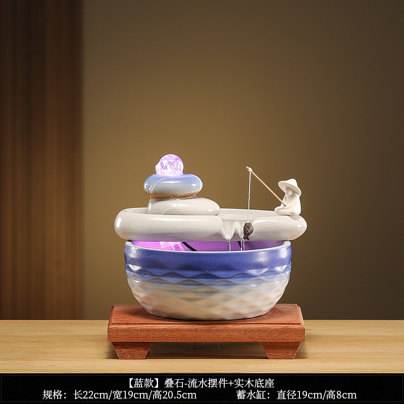 • [블루 모델] Luxiang Ruyi - 흐르는 물 장식품 + 분무기 + 단단한 나무 베이스