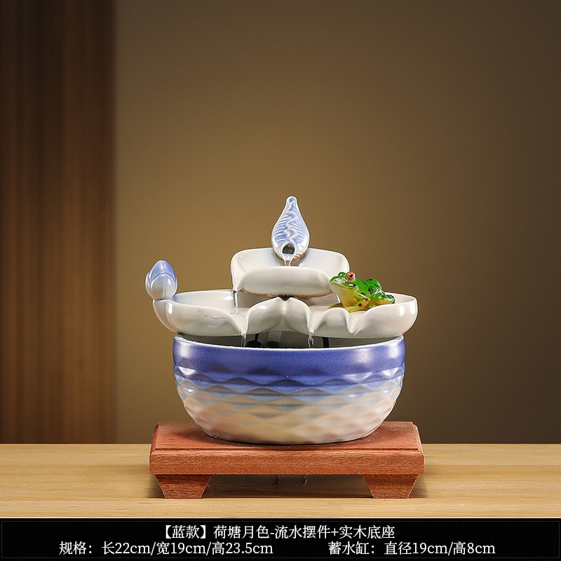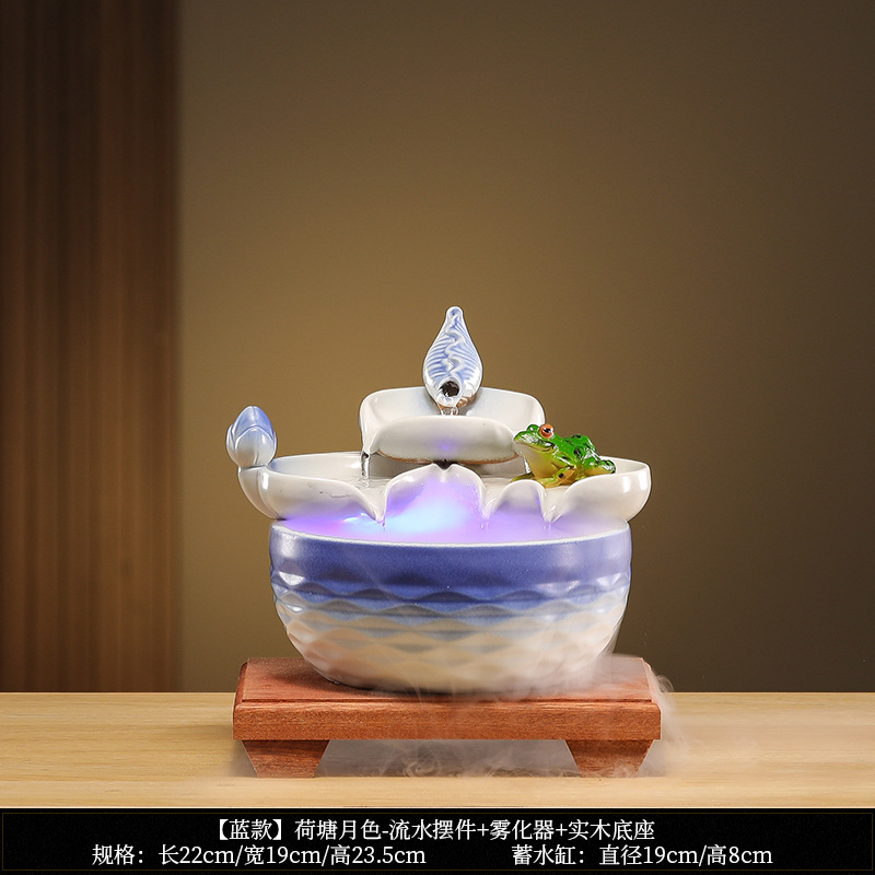 • [블루 모델] 연꽃 연못 달빛 - 흐르는 물 장식품 + 분무기 + 원목 베이스