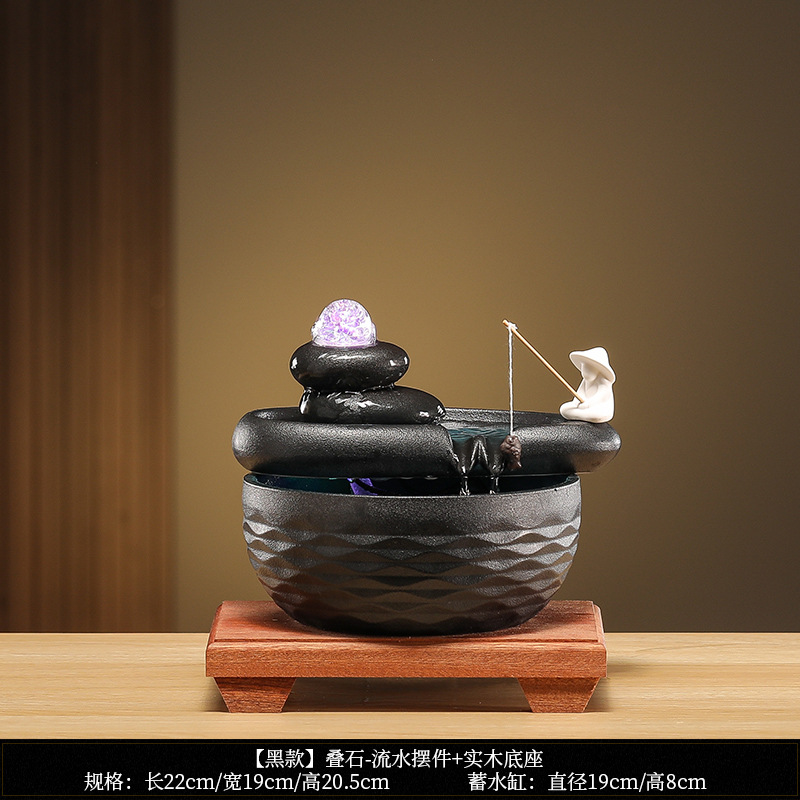 • [블랙 모델] Sansheng Stone - 흐르는 물 장식품 + 원목 베이스