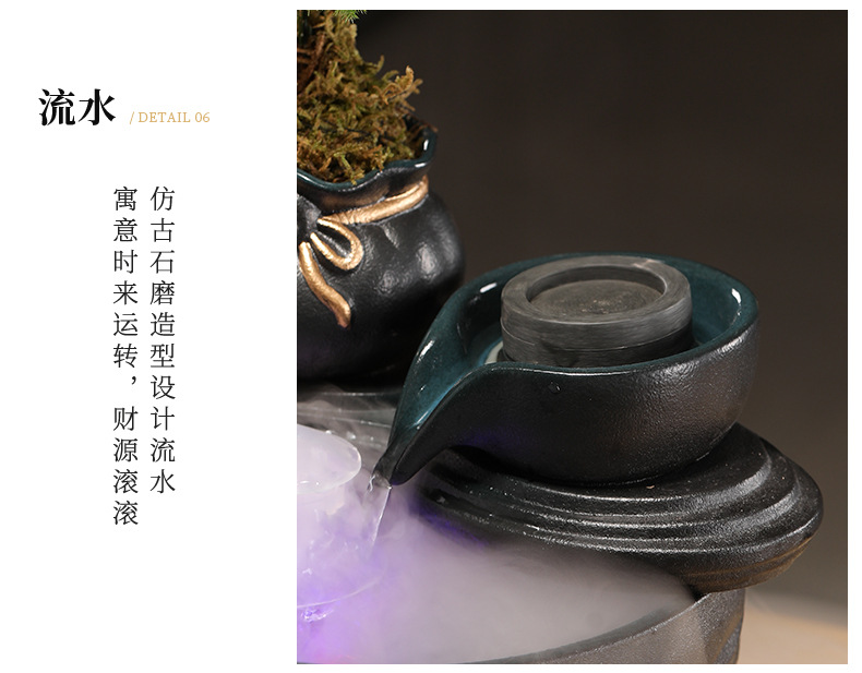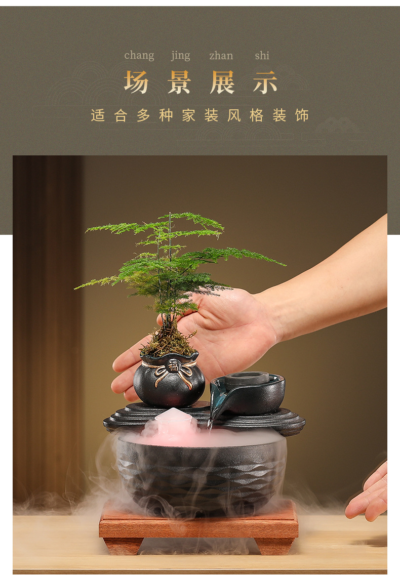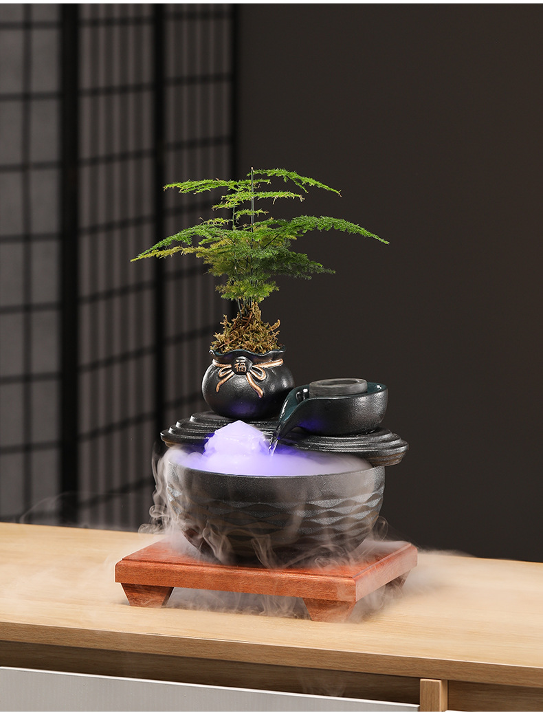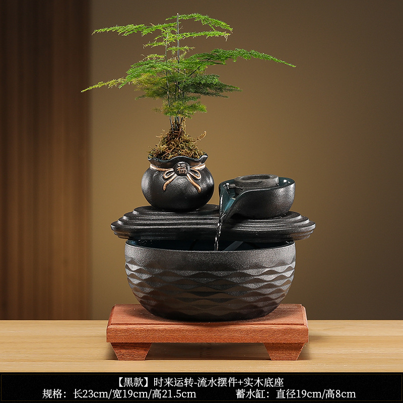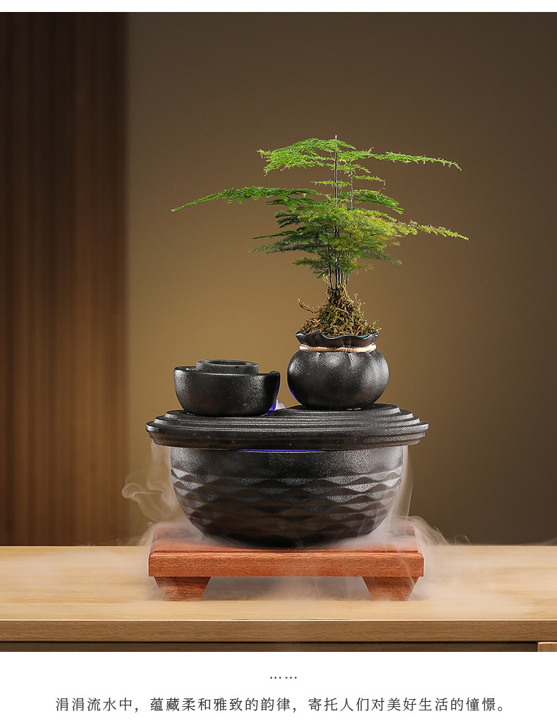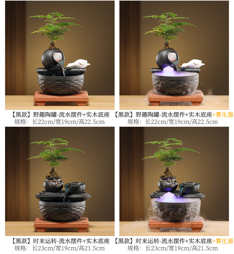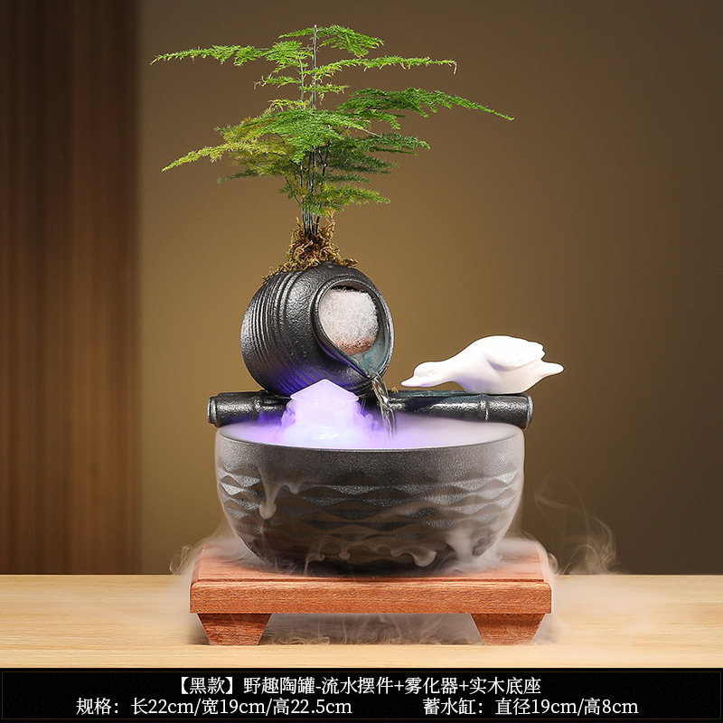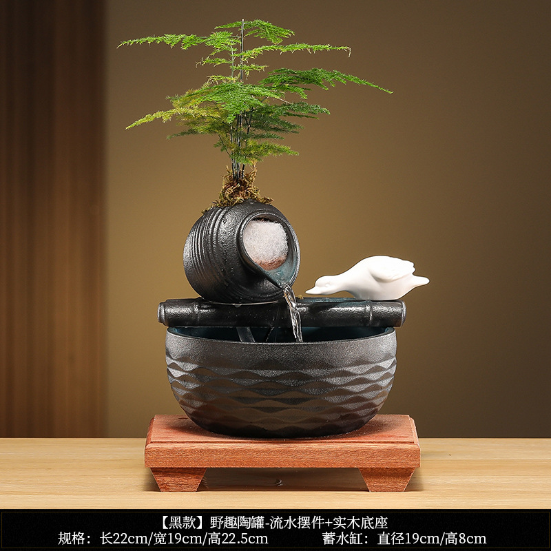 • [블랙 모델] 와일드 항아리 - 흐르는 물 장식품 + 분무기 + 원목 베이스
