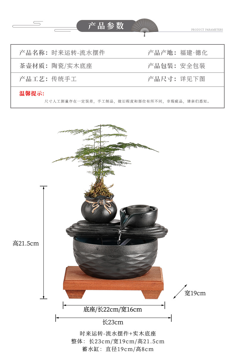 • [블랙 모델] 행운을 빌어요 - 흐르는 물 장식 + 원목 베이스