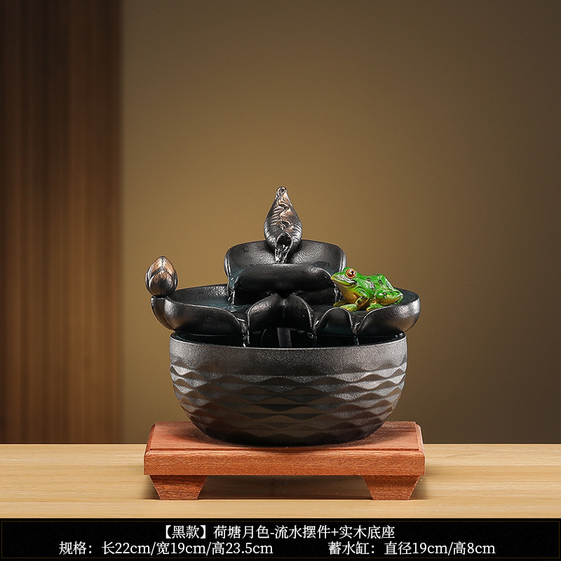 • [블랙 모델] 연꽃 연못 달빛 - 흐르는 물 장식 + 원목 베이스