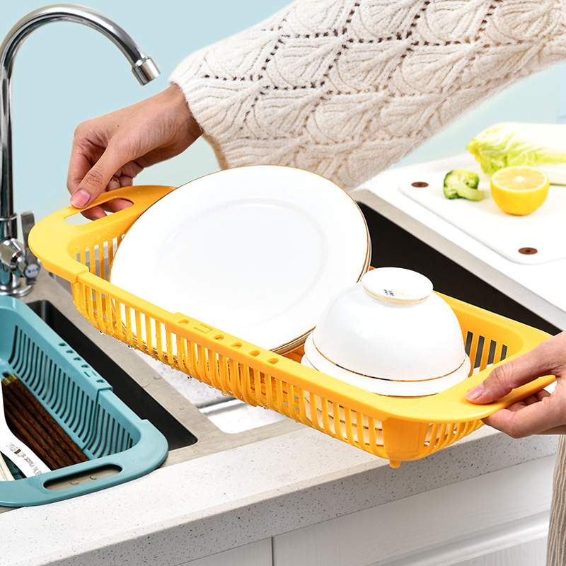 배수 바구니 접시 랙 가정용 주방 그릇 및 젓가락을위한 야채 세척 분지 저장 랙스토어 가기