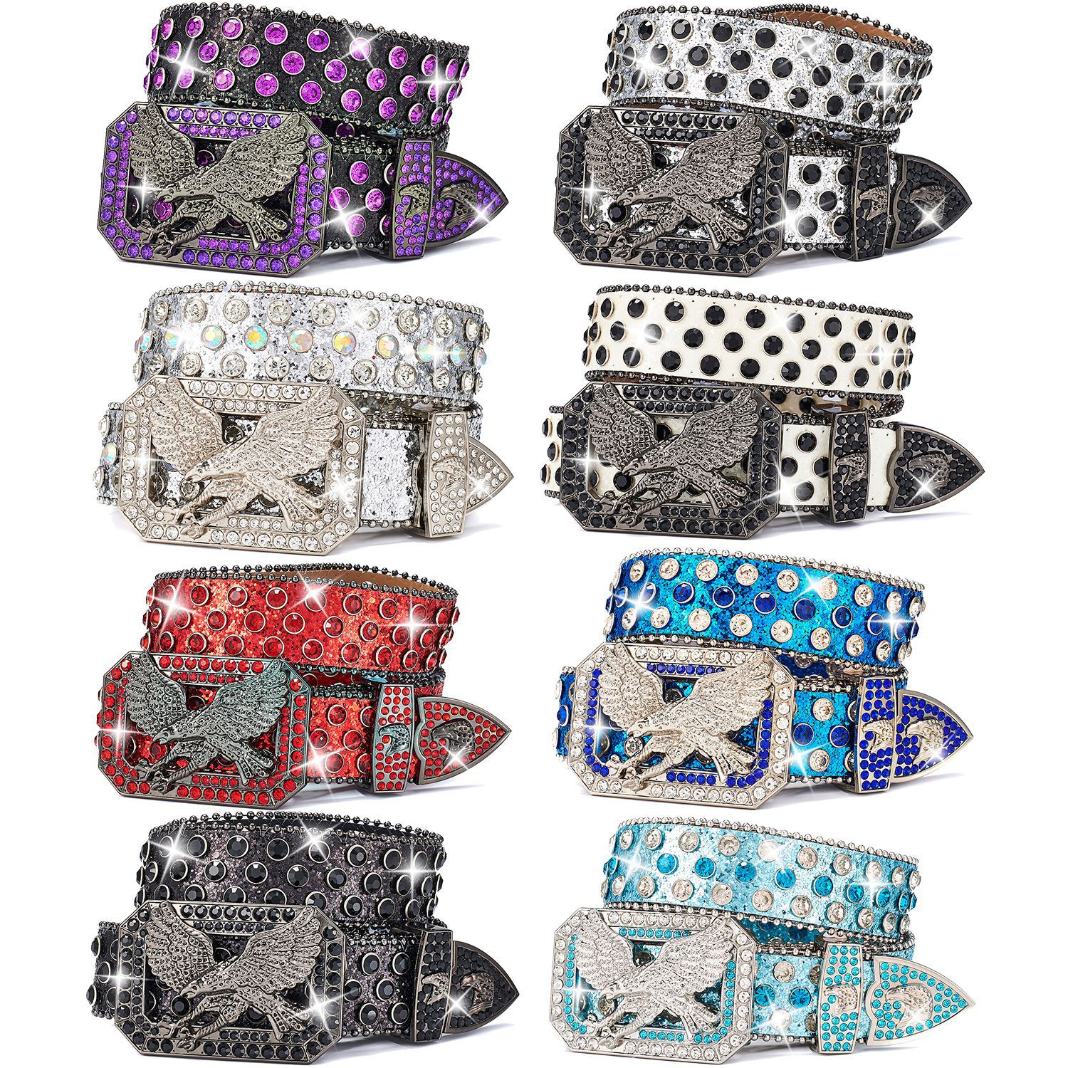 국경 간 펑크 벨트 유럽과 미국 스타일의 모자이크 모조 다이아몬드 스팽글 비행 독수리 록 패션 벨트 남성과 여성 벨트스토어 가기