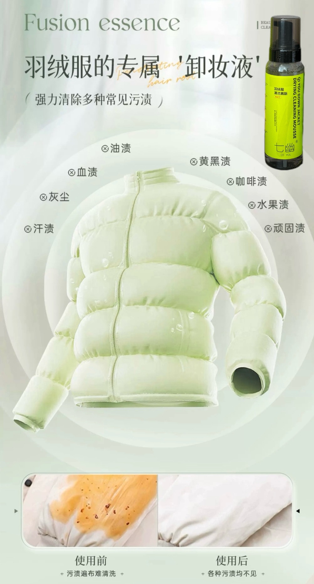 칠유 다운재킷 드라이클리닝제, 오염제거, 잔여물 없음, 순한 포뮬러, 옷을 손상시키지 않음, 쉽게 새것처럼 복원, 다운재킷 전용