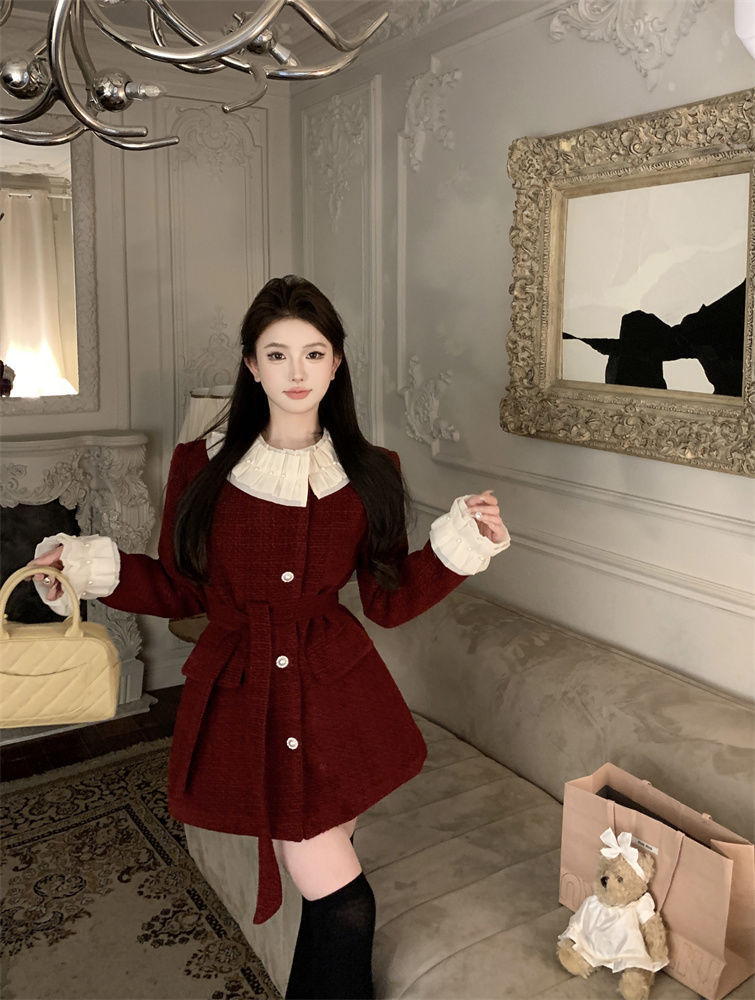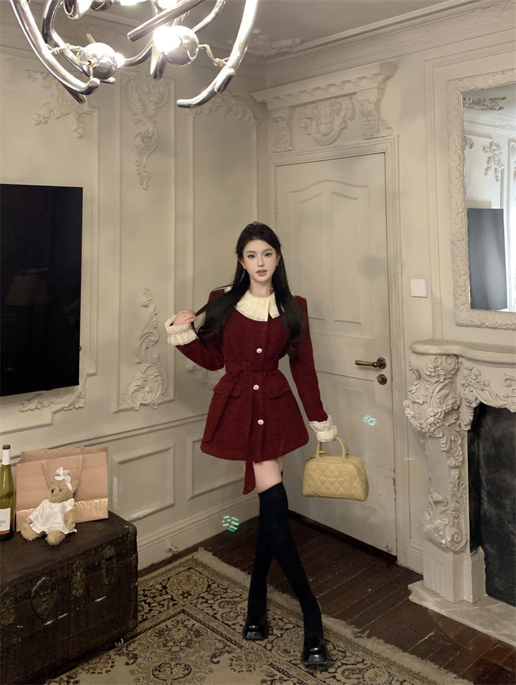 프랑스 스타일 향기로운 스타일 이른 가을 새로운 웨이스트 밴드 향기로운 스타일 세트 재킷 작은 인터넷 빨간 여성 (자카드 직물)스토어 가기