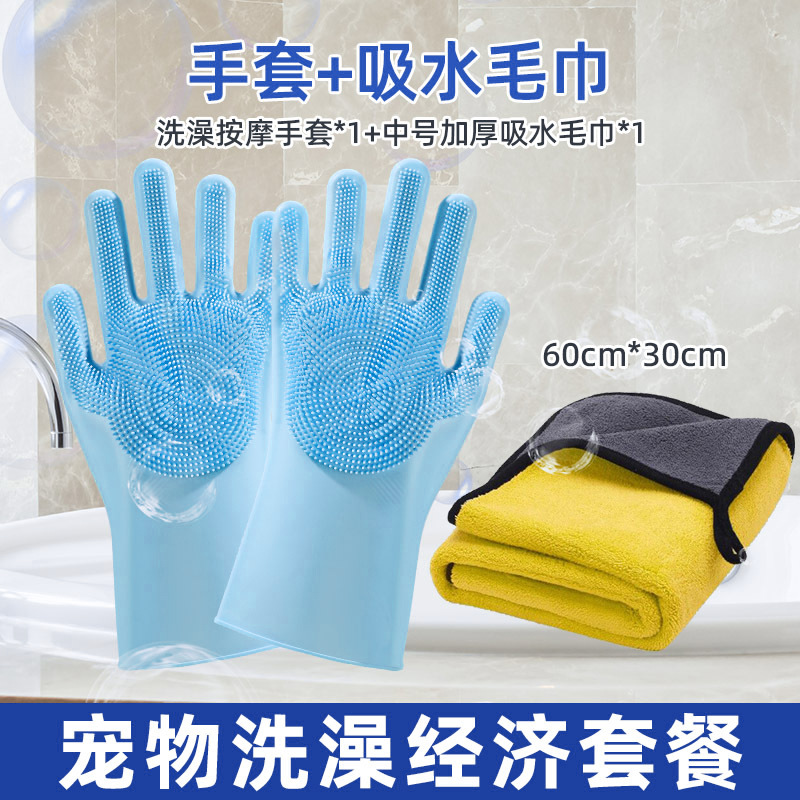 • 물림 방지 목욕 장갑 1쌍 + 대형 두꺼운 흡수성 수건