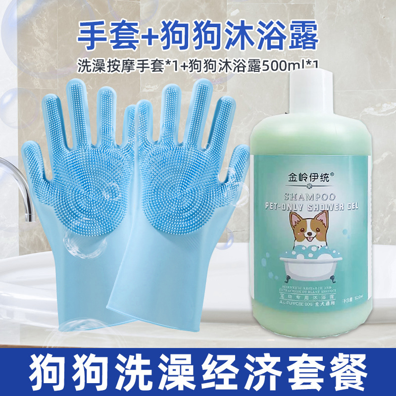 • 물림 방지 목욕 장갑 1쌍 + 럭셔리 모델 [모든 개에게 공통] 샴푸 및 샤워 젤