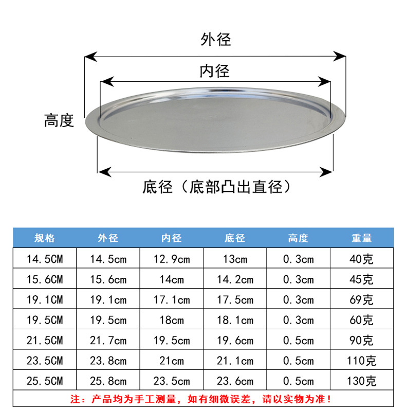 평평한 바닥 얕은 판 스테인레스 스틸 패드 판 바닥 홀더 둥근 평평한 판 편평한 뚜껑 보관할 수있는 높은 판 덮개 부품 액세서리 공작물