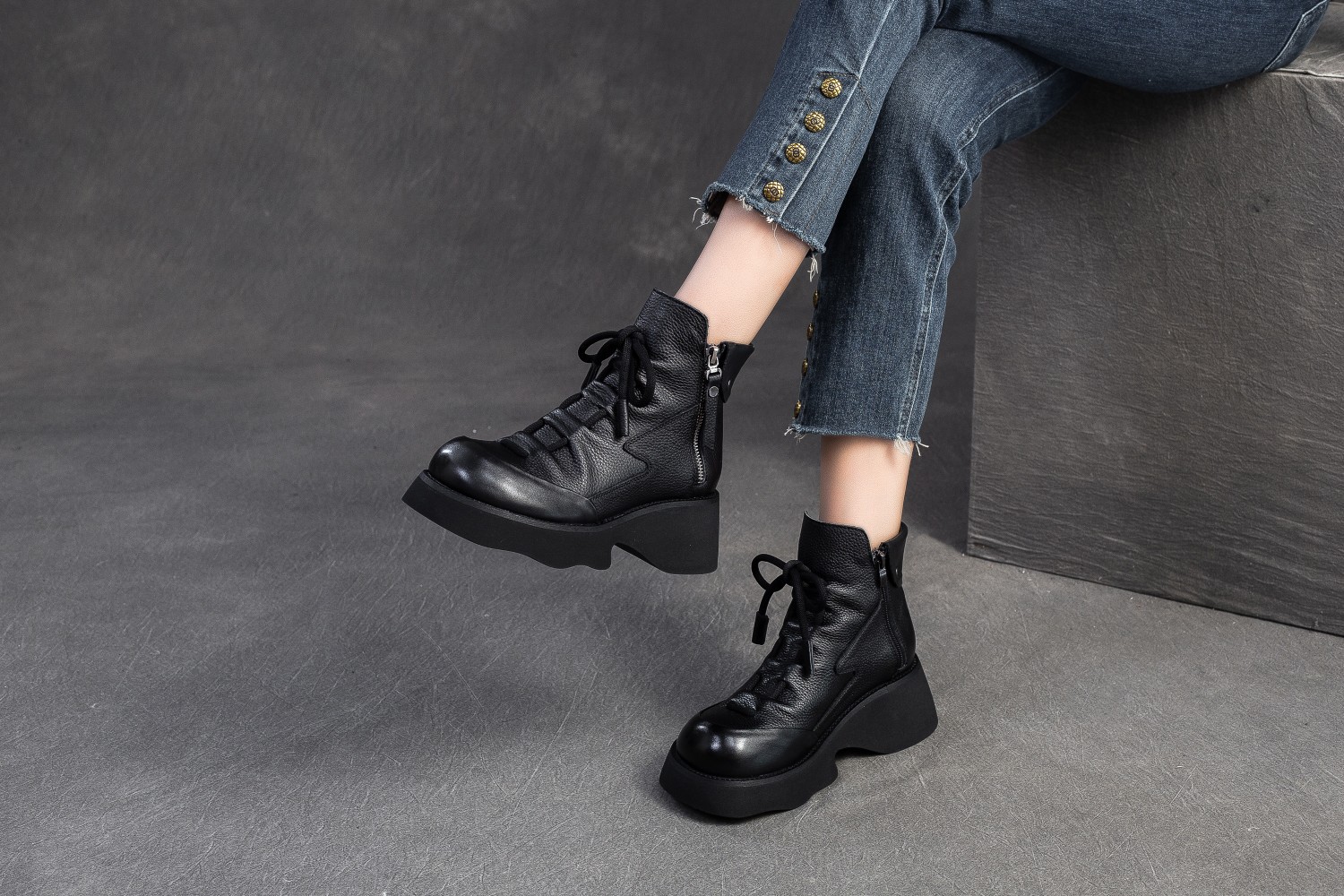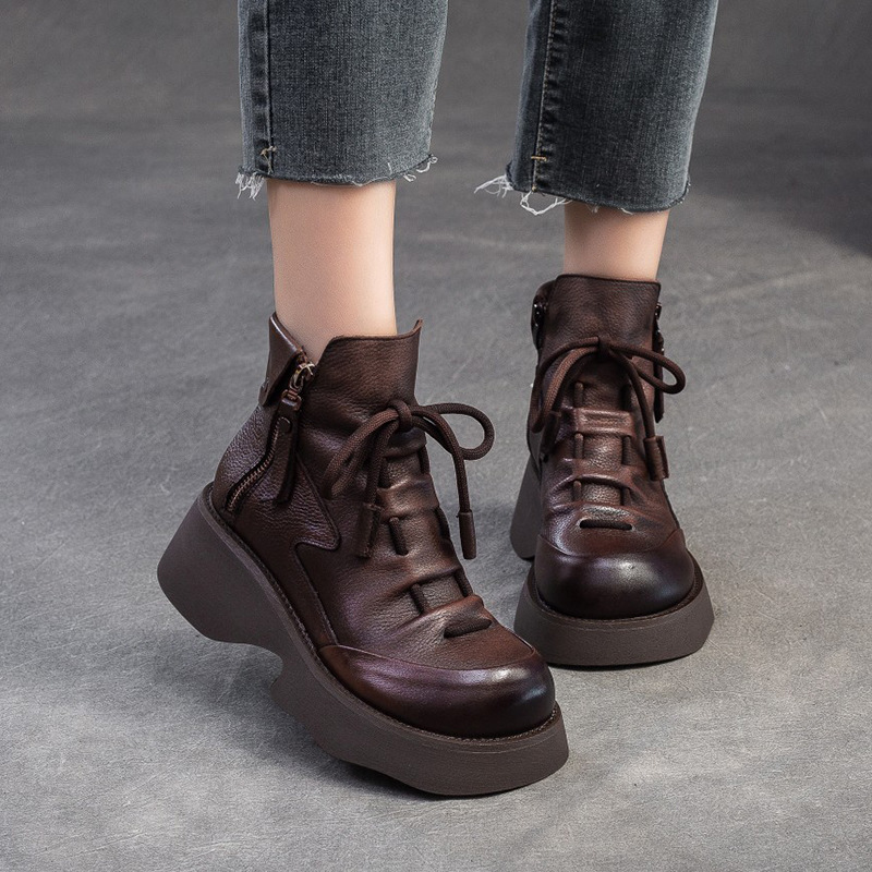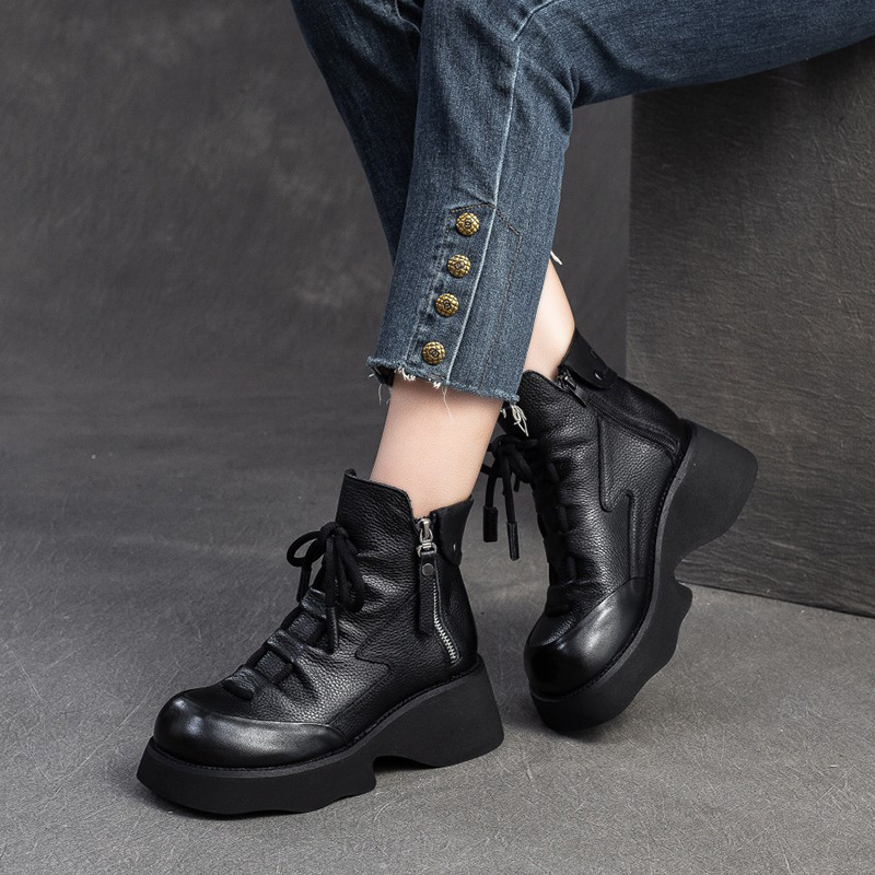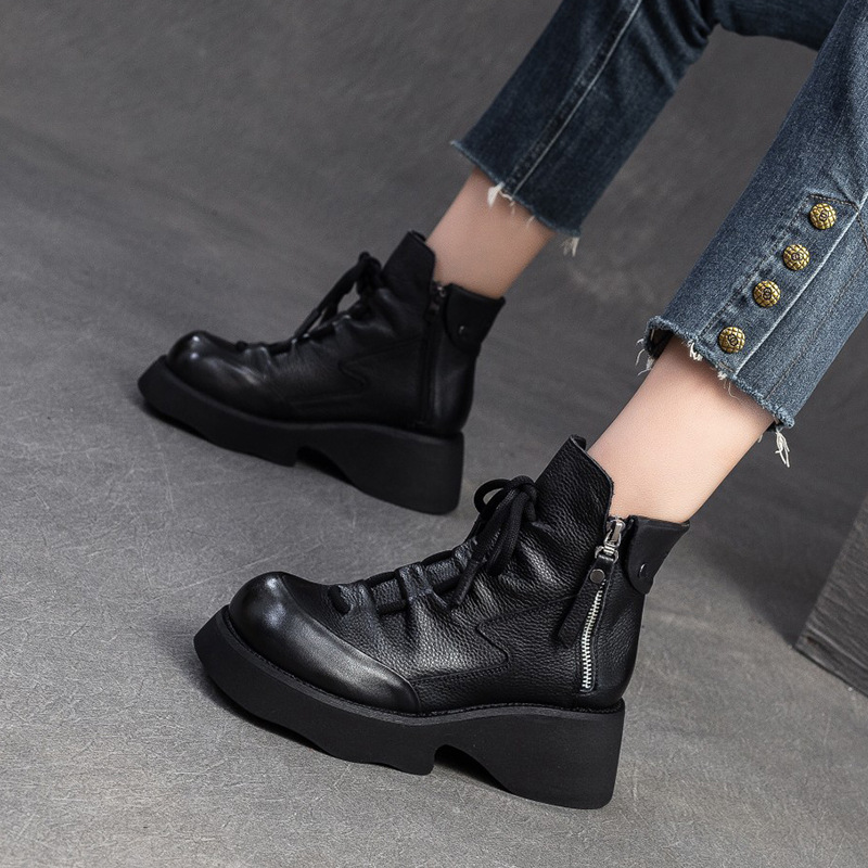 탑 레이어 소 가죽 빈티지 마틴 부츠 여성의 2024 새로운 가을 사이드 지퍼 두꺼운 바닥 증가 올 매치 슬림 부츠스토어 가기