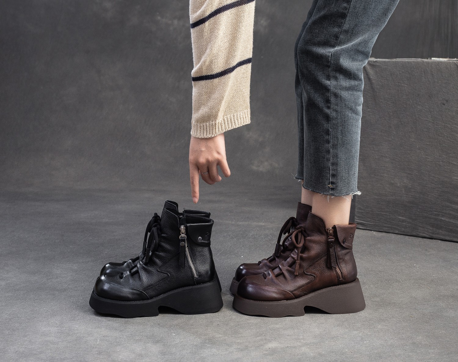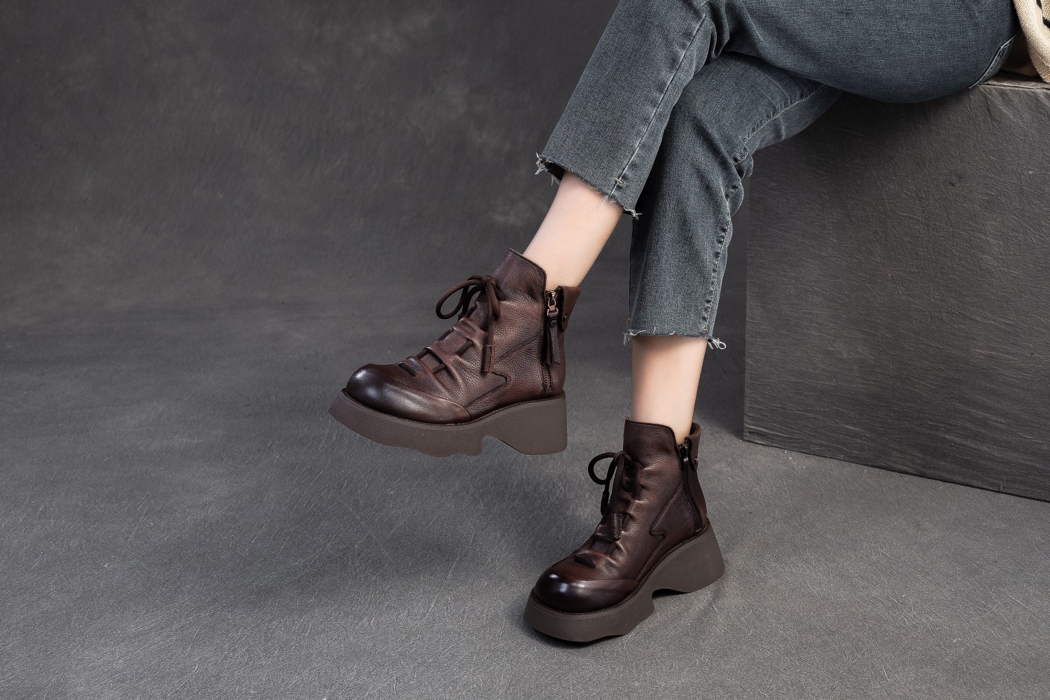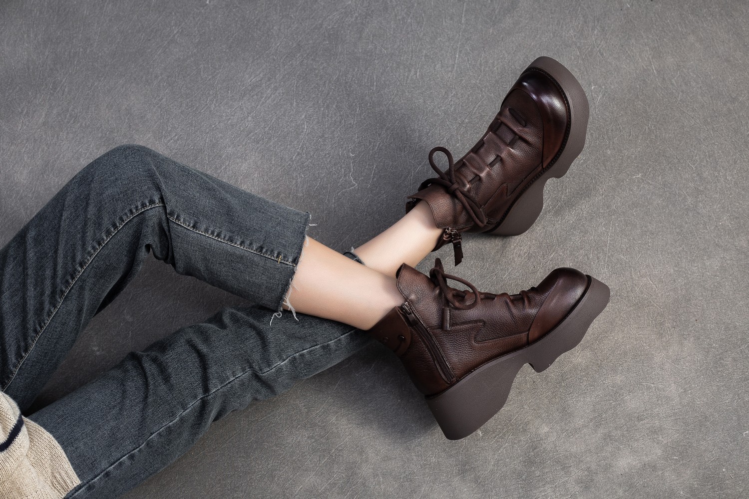 탑 레이어 소 가죽 빈티지 마틴 부츠 여성의 2024 새로운 가을 사이드 지퍼 두꺼운 바닥 증가 올 매치 슬림 부츠스토어 가기