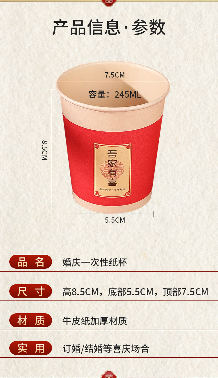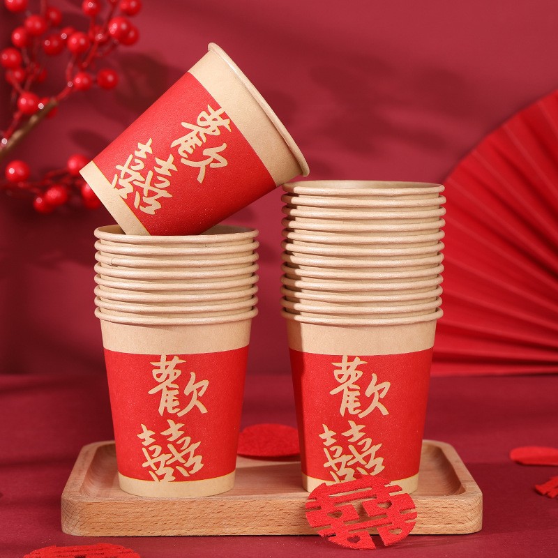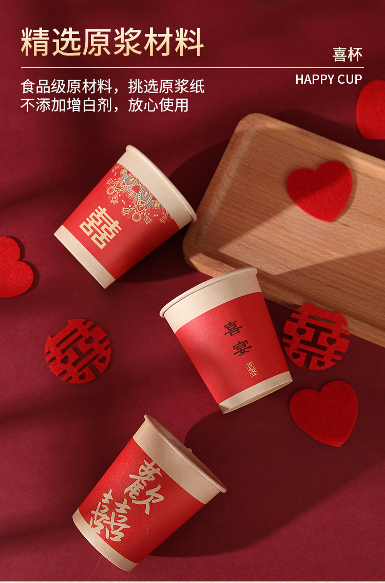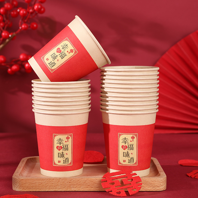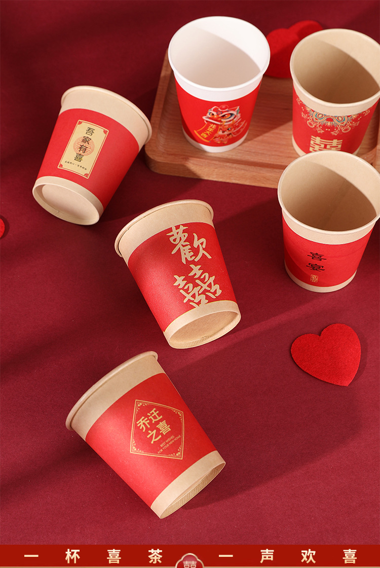 웨딩 페이퍼 컵 일회용 해피 컵 웨딩 티 컵 웨딩 연회 레드 두꺼운 골드 포일 티 컵 웨딩 용품스토어 가기