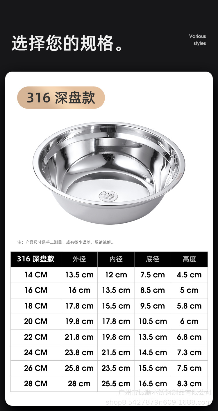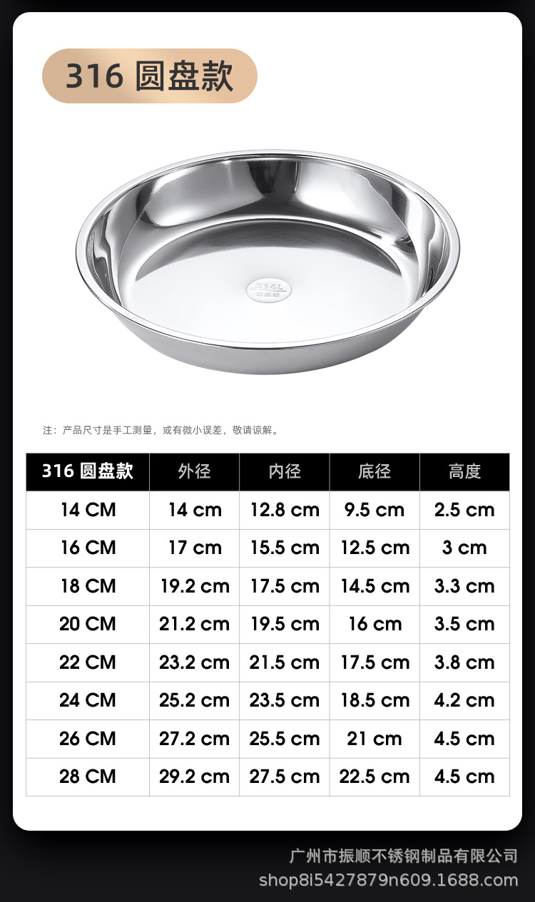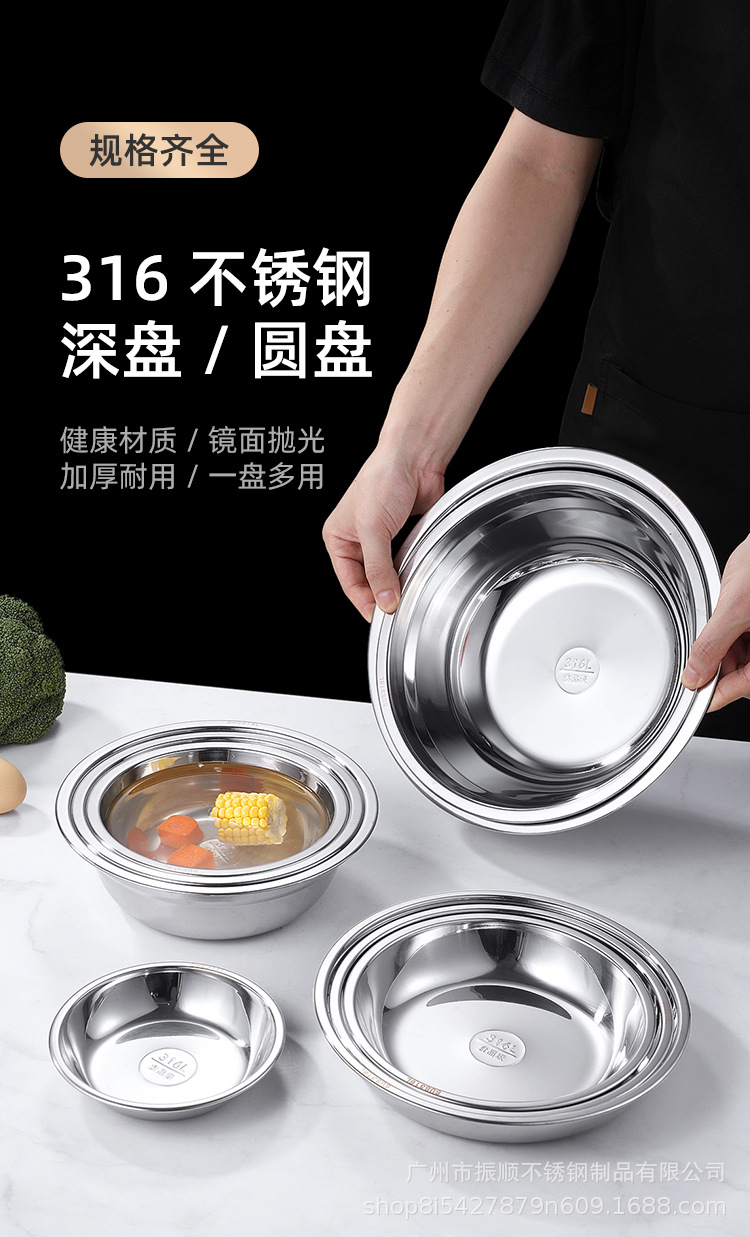 도매 316 스테인레스 스틸 디스크 접시 수프 플레이트 수프 냄비 플랫 바닥 접시 가정용 접시 대형 수프 냄비 수프 국수 그릇스토어 가기