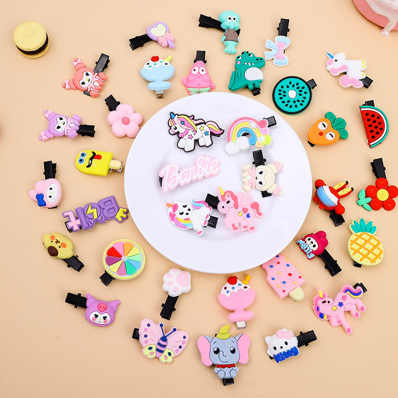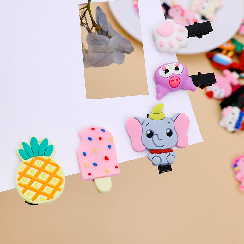 귀여운 소녀 슈퍼 귀여운 부드러운 접착제 만화 동물 애니메이션 수지 소녀 아기 뱅 깨진 머리핀 액세서리스토어 가기
