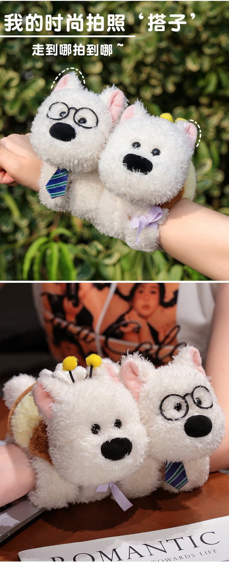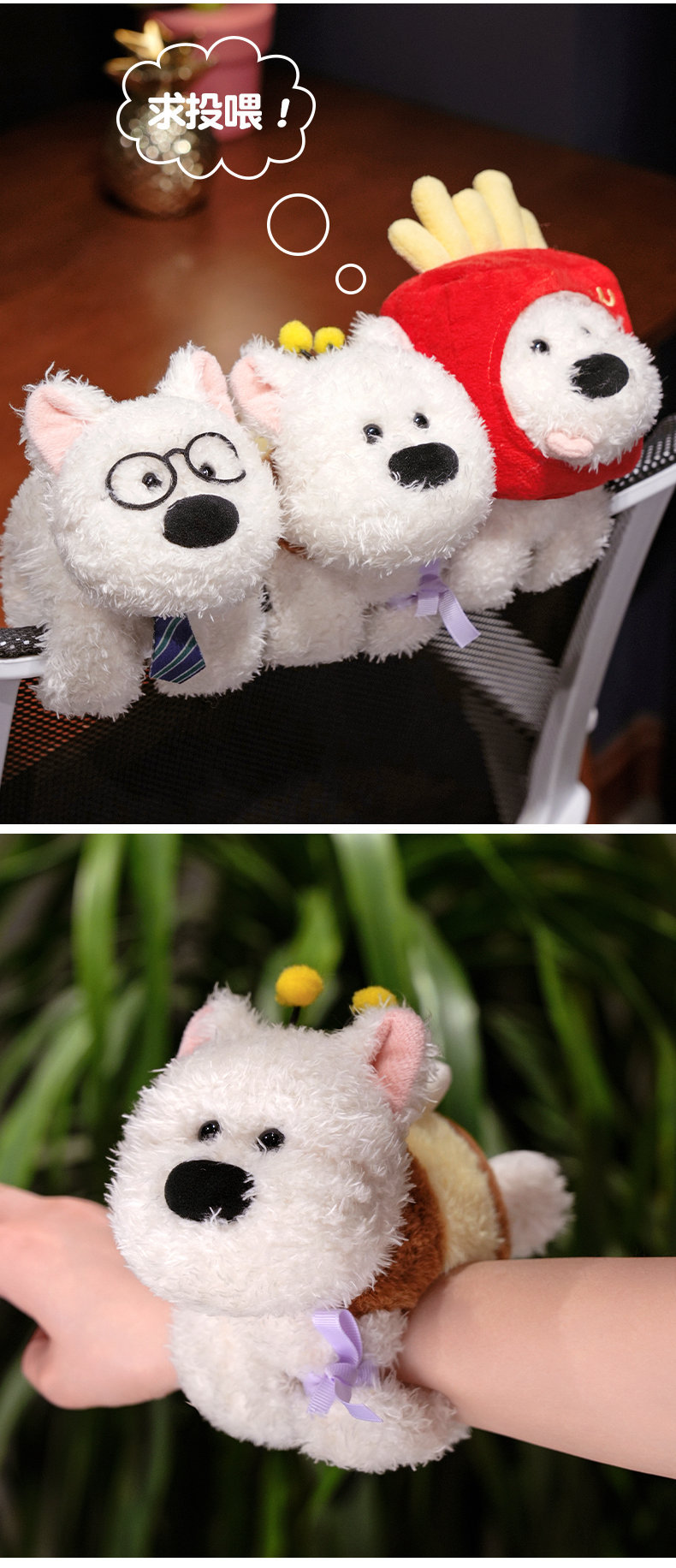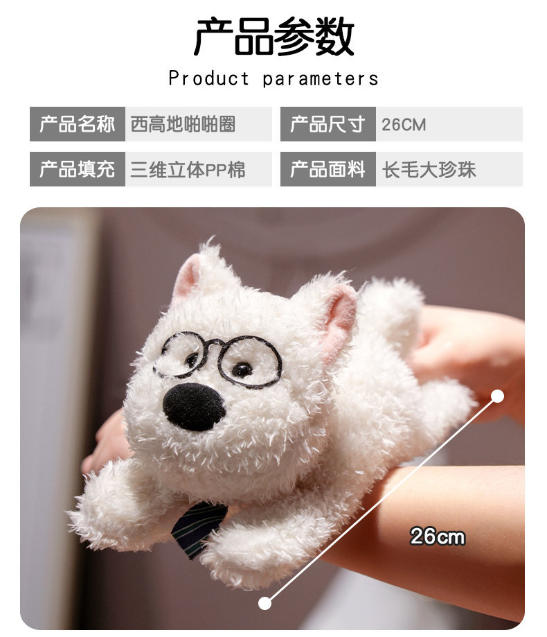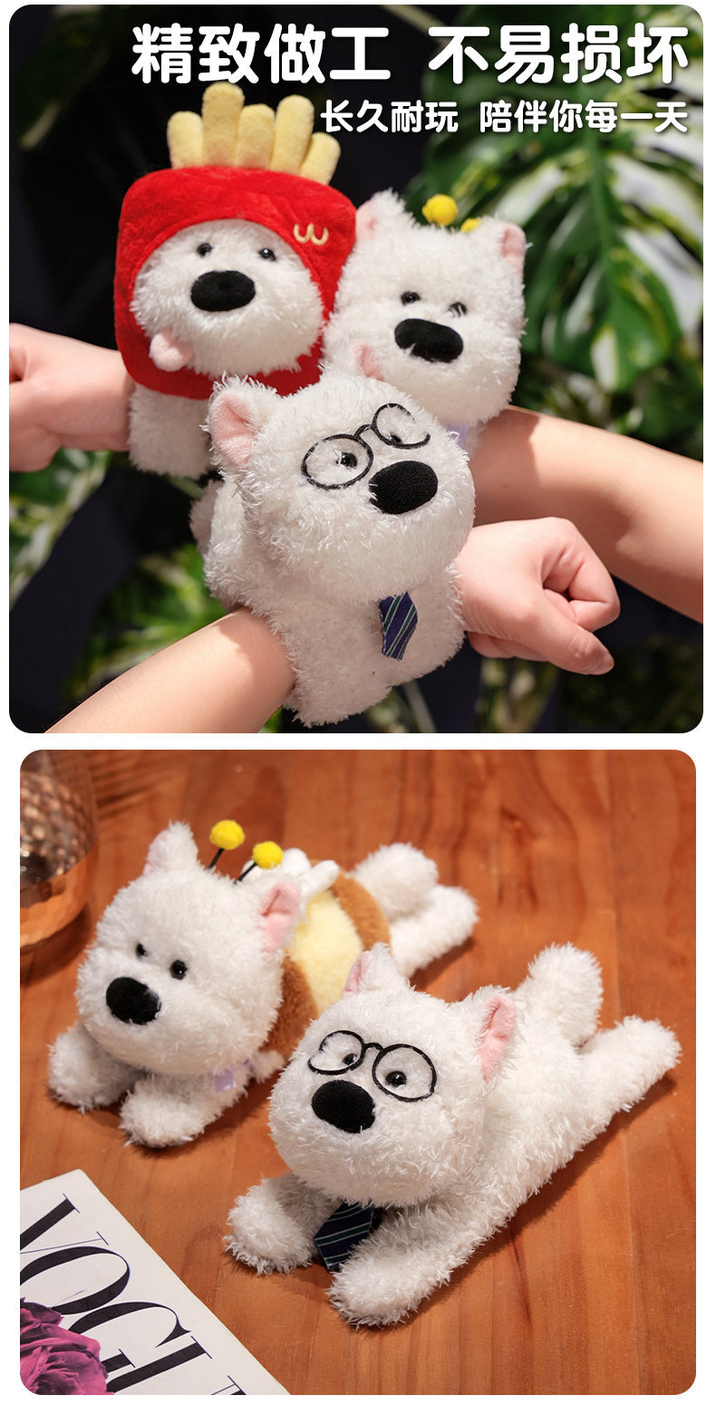 귀여운 웨스트 하이랜드 강아지 팔찌 어린이 손목 봉제 장난감 인형 소년 소녀 인형 선물