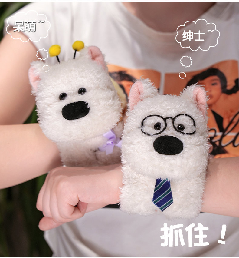 귀여운 웨스트 하이랜드 강아지 팔찌 어린이 손목 봉제 장난감 인형 소년 소녀 인형 선물스토어 가기
