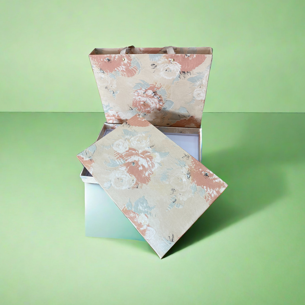 • 노란 꽃 하늘과 땅 덮개 선물 상자, 완전한 세트(내부 상자 + 핸드백)