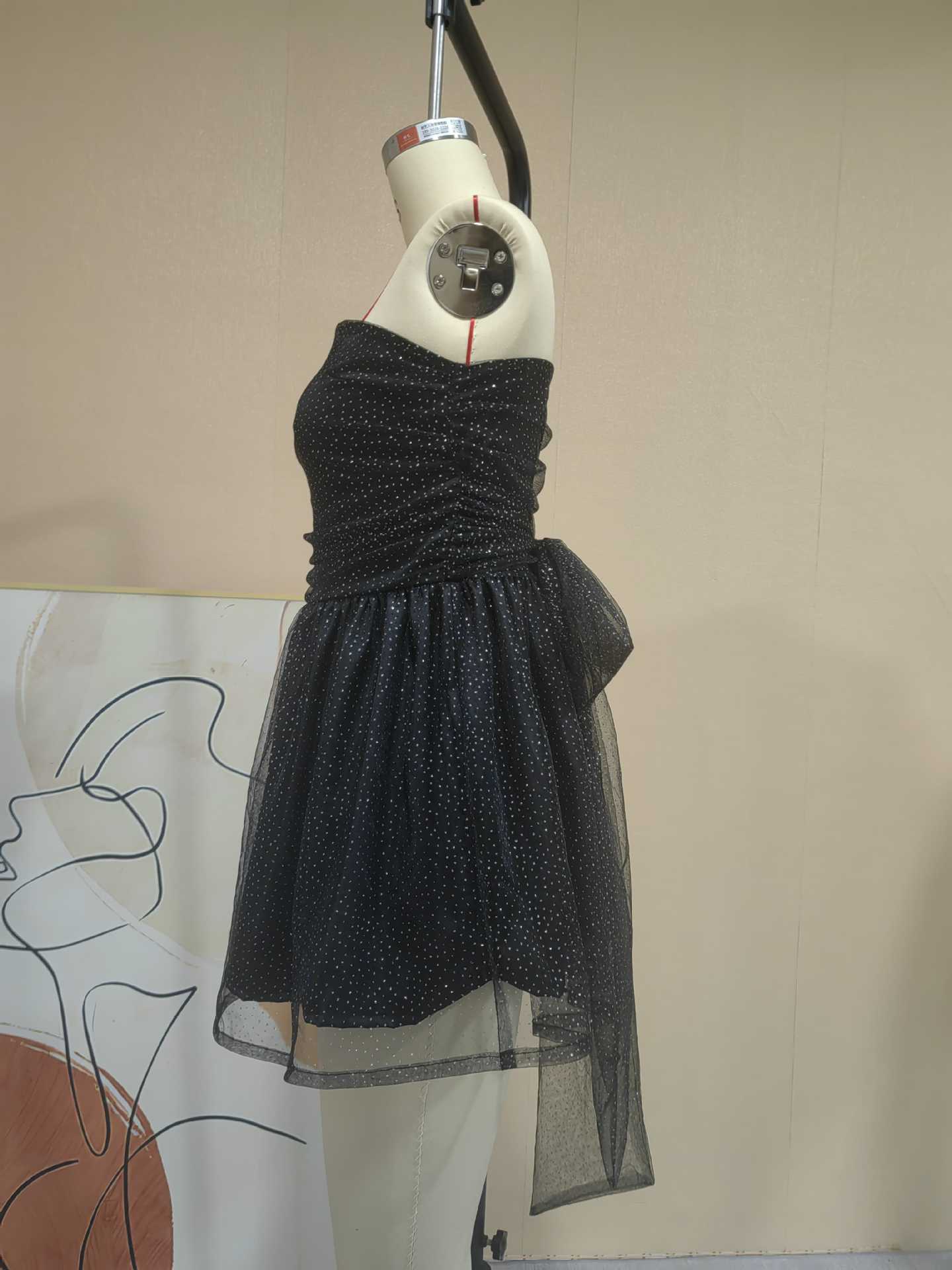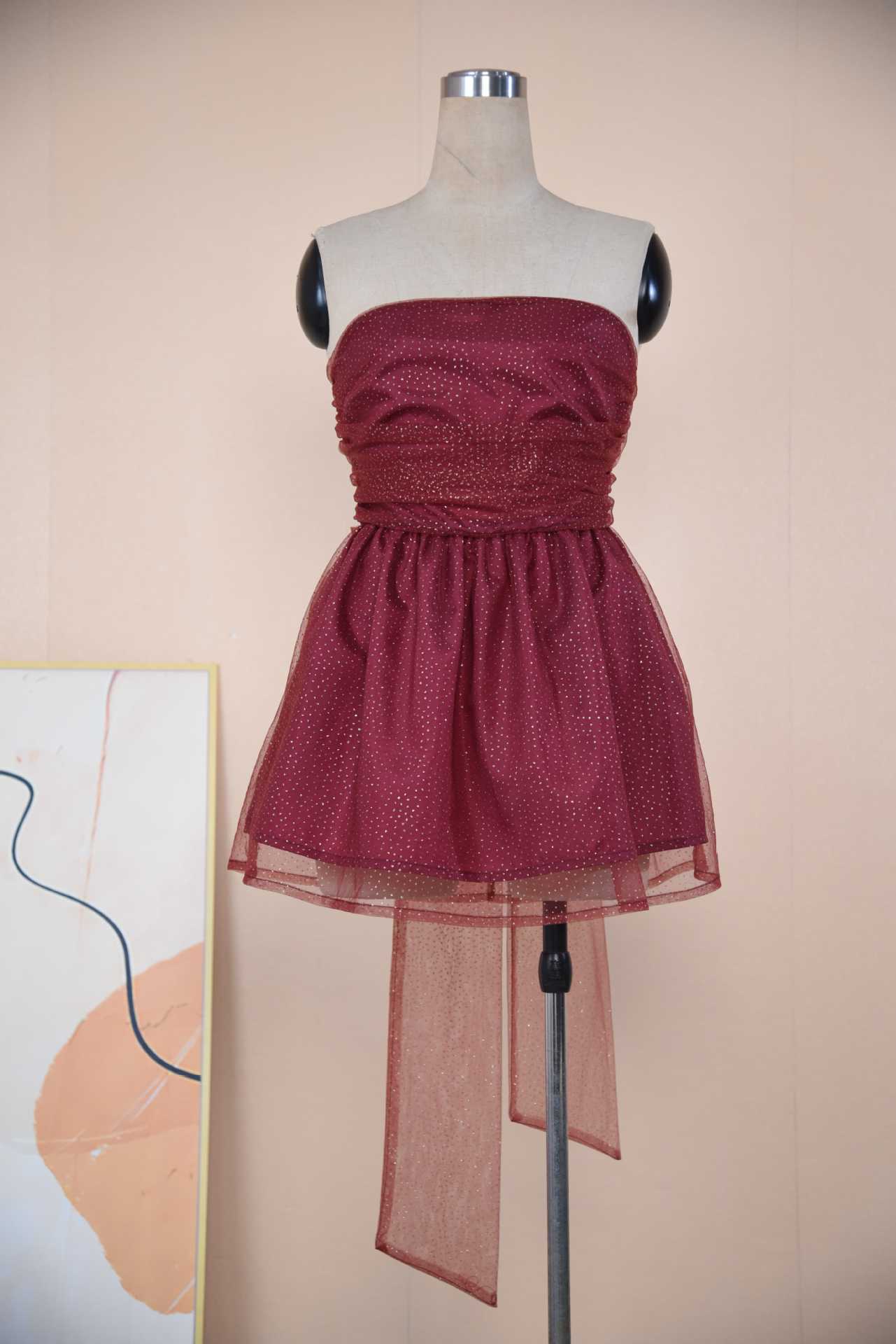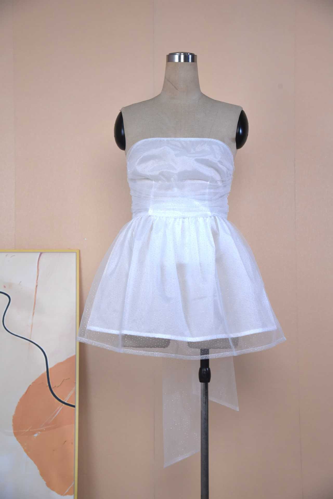 유럽과 미국 국경 2024 뜨거운 새로운 스타일 한 단어 칼라 튜브 탑 푹신한 스커트 패션 트렌드 민소매 백리스 원피스 여성스토어 가기