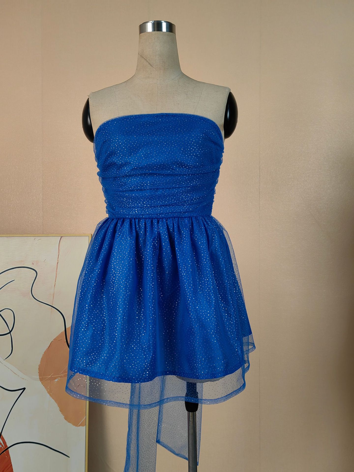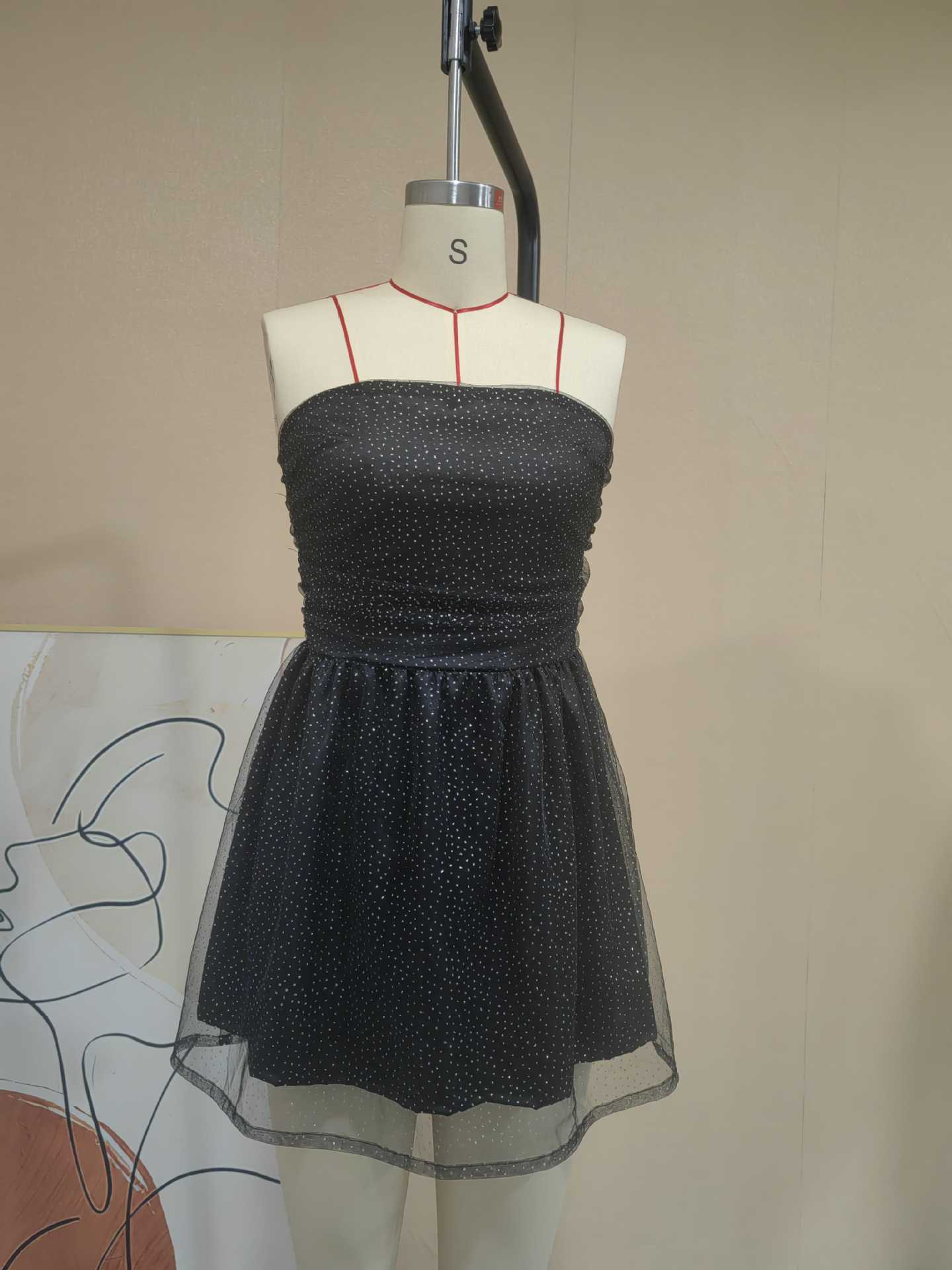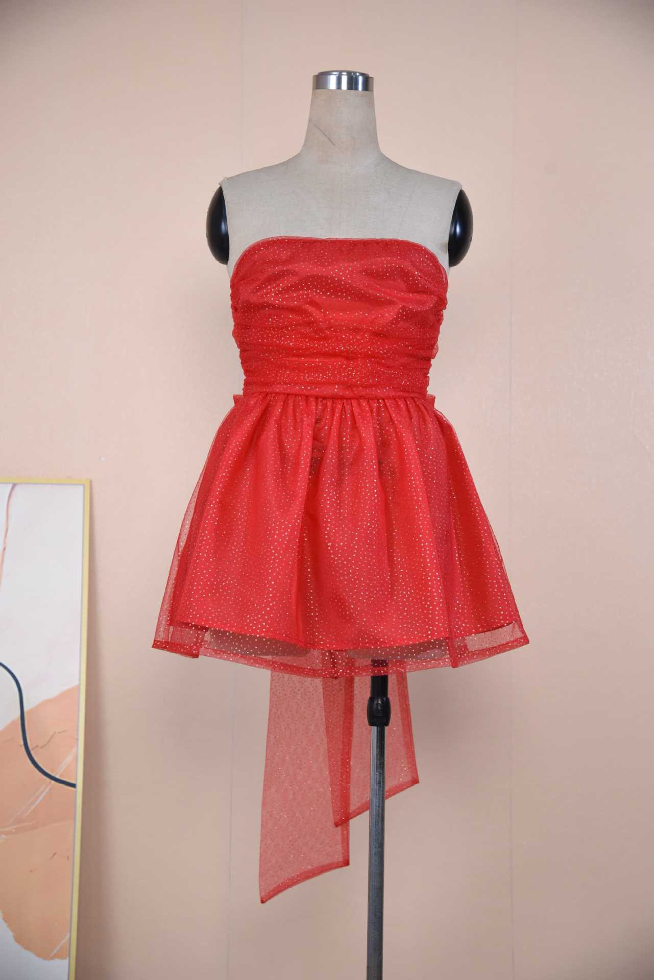유럽과 미국 국경 2024 뜨거운 새로운 스타일 한 단어 칼라 튜브 탑 푹신한 스커트 패션 트렌드 민소매 백리스 원피스 여성스토어 가기