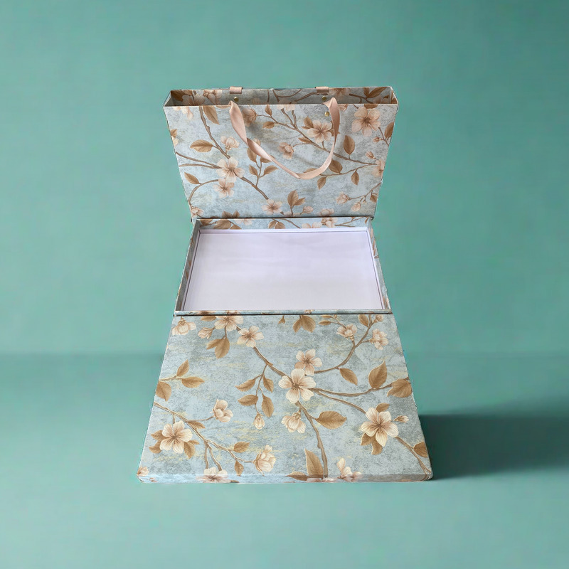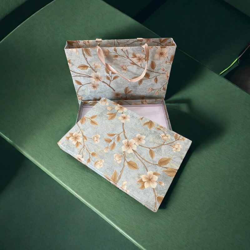 • 녹색 꽃 하늘과 땅 덮개 선물 상자, 완전한 세트(내부 상자 + 핸드백)